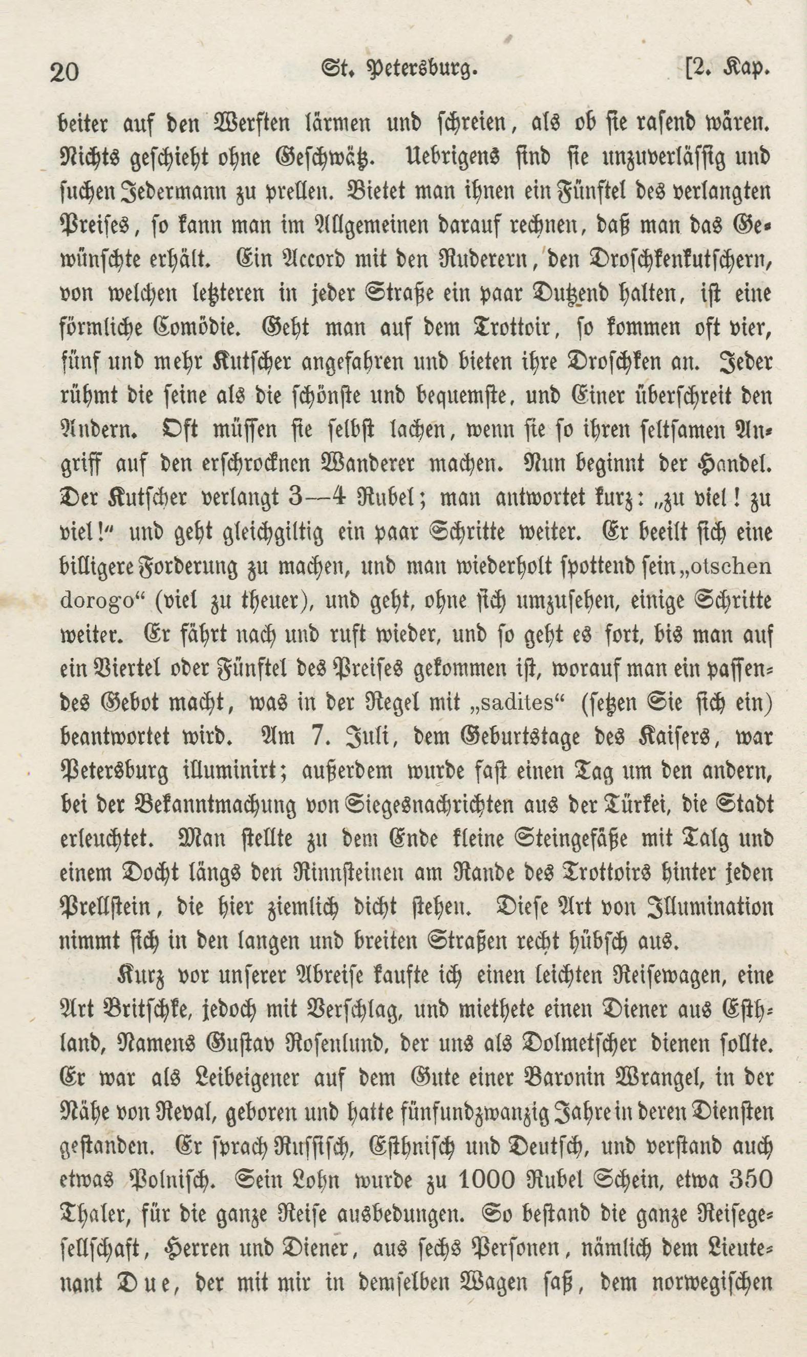 Der Kutscker verlangt 3—4 Rubel; man antwortet kurz: „zu viel! zu