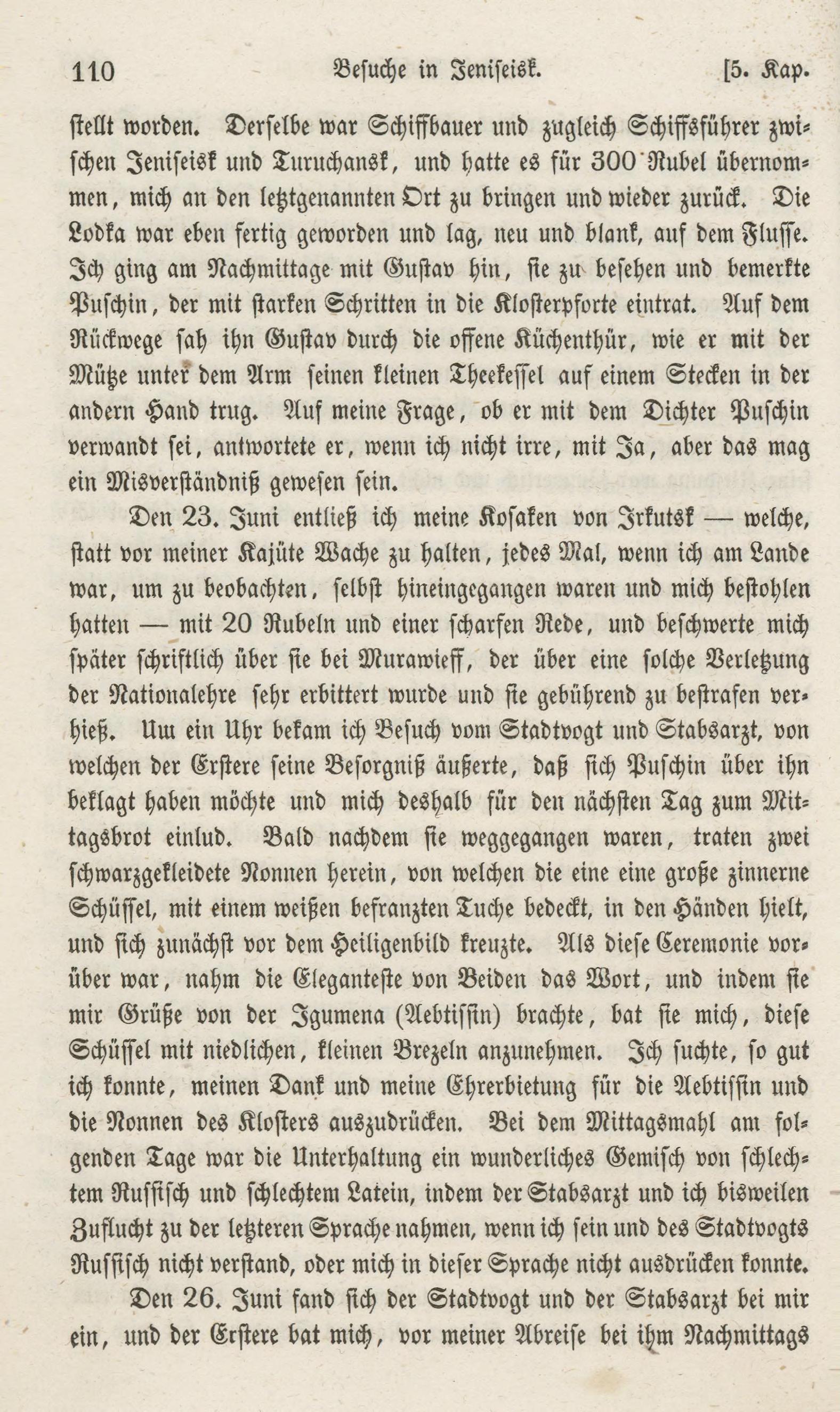 andern Hand trug. Auf meiue Fråge, ob er mit dem Dichter Puschin