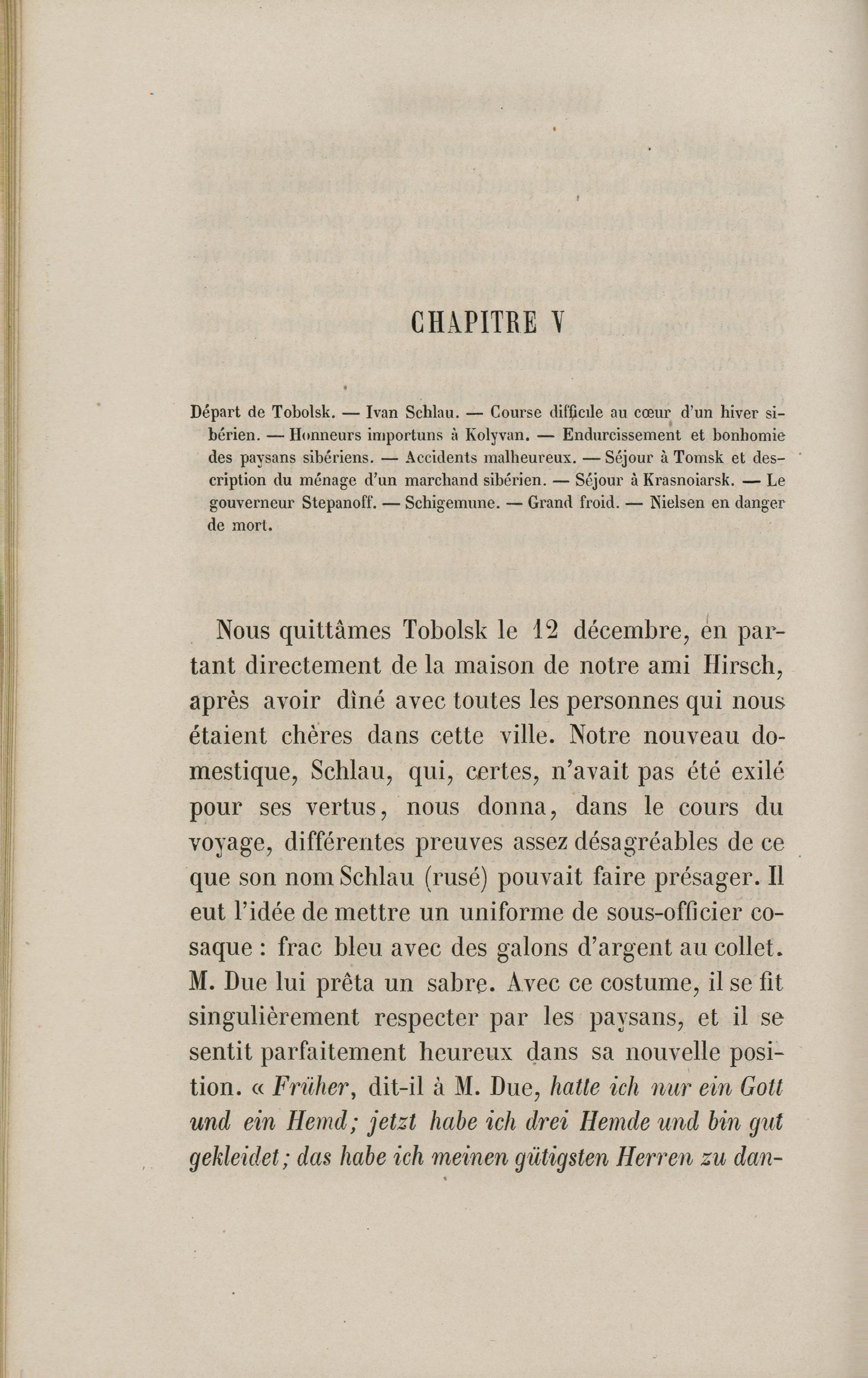 Full resolution (JPEG) - On this page / på denna sida - V. Départ de Tobolsk. — Ivan Schlau. — Course difficile au cœur d’un hiver sibérien. — Honneurs importuns à Kolyvan. — Endurcissement et bonhomie des paysans sibériens. — Accidents malheureux. — Séjour à Tomsk et description du ménage d’un marchand sibérien. — Séjour à Krasnoiarsk. — Le gouverneur Stepanoff. — Schigemune. — Grand froid. — Nielsen en danger de mort