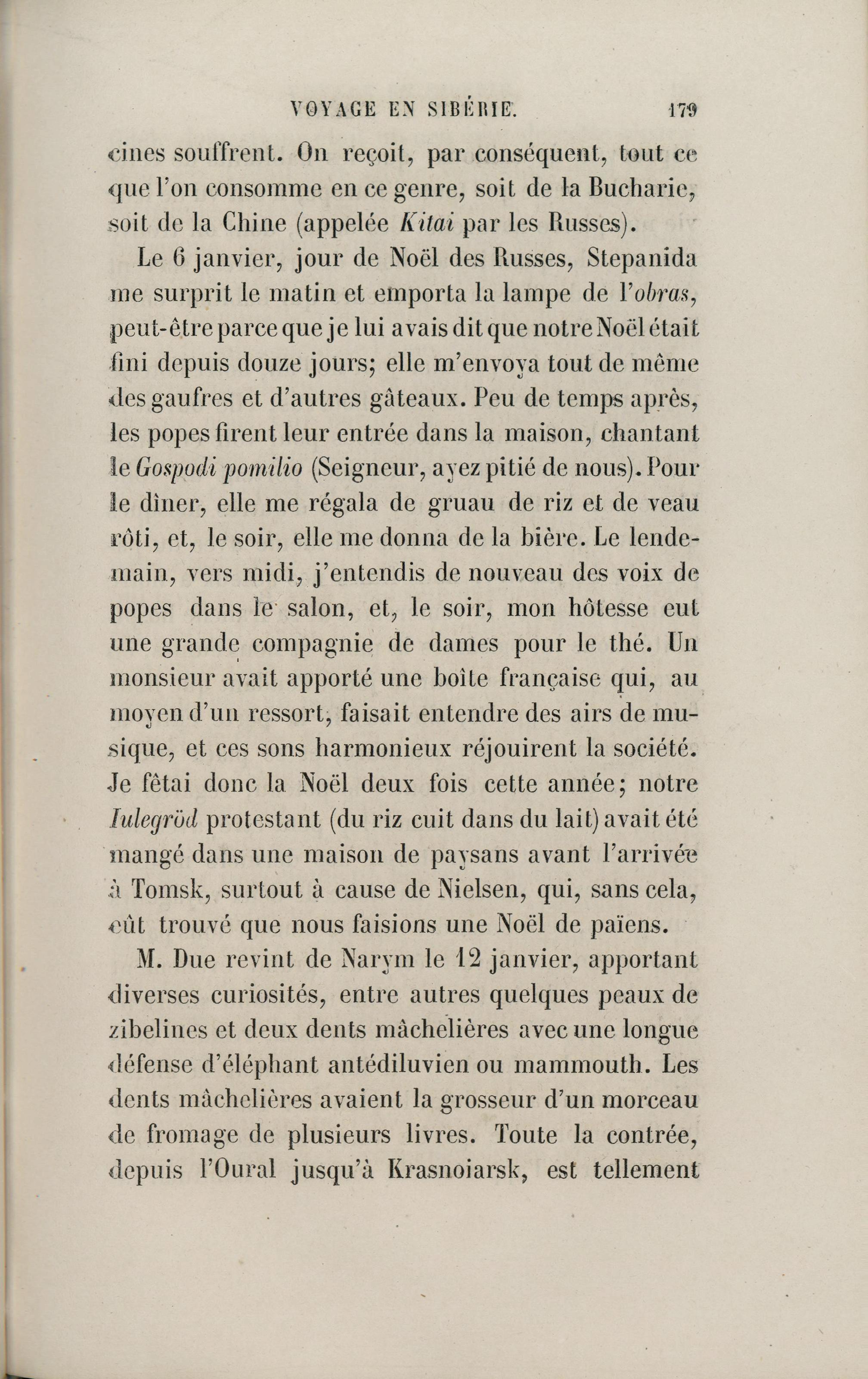 Full resolution (JPEG) - On this page / på denna sida - V. Départ de Tobolsk. — Ivan Schlau. — Course difficile au cœur d’un hiver sibérien. — Honneurs importuns à Kolyvan. — Endurcissement et bonhomie des paysans sibériens. — Accidents malheureux. — Séjour à Tomsk et description du ménage d’un marchand sibérien. — Séjour à Krasnoiarsk. — Le gouverneur Stepanoff. — Schigemune. — Grand froid. — Nielsen en danger de mort