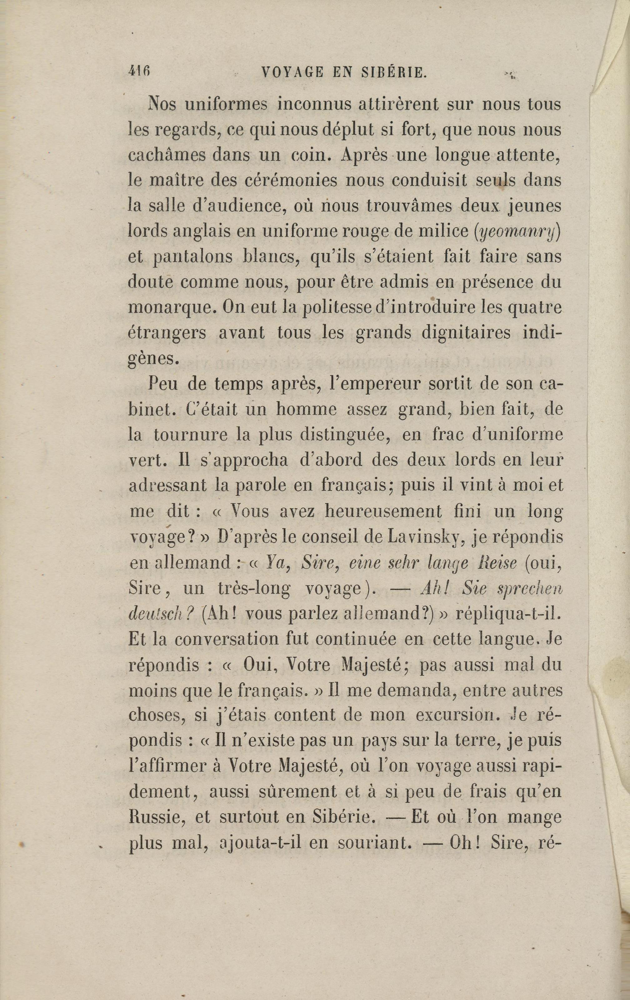 Full resolution (JPEG) - On this page / på denna sida - XI. Départ d’Astrakan. Sarepta, ville des frères Moraves. — Colonies allemandes et françaises le long du Volga. — Chemins difficiles pendant l’hiver. — Une famille danoise à Saransk. — Anciennes connaissances à Moscou. — Le baron Schilling de Canstadt. — Langue écrite des Chinois. — Fabrique d’Ischora. — Audience de l’empereur Nicolas et de l’impératrice à Saint-Pétersbourg. — Les ministres Speranski et Cancrin