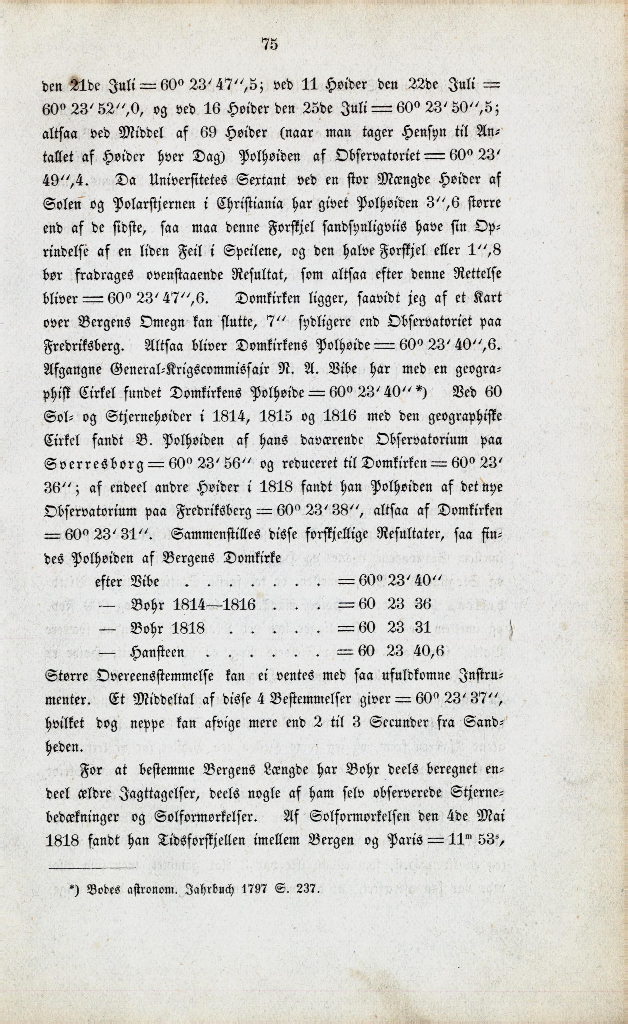 1818 fandt han Tidsforskjellen imellem Bergen og Paris=11m 53-’,
