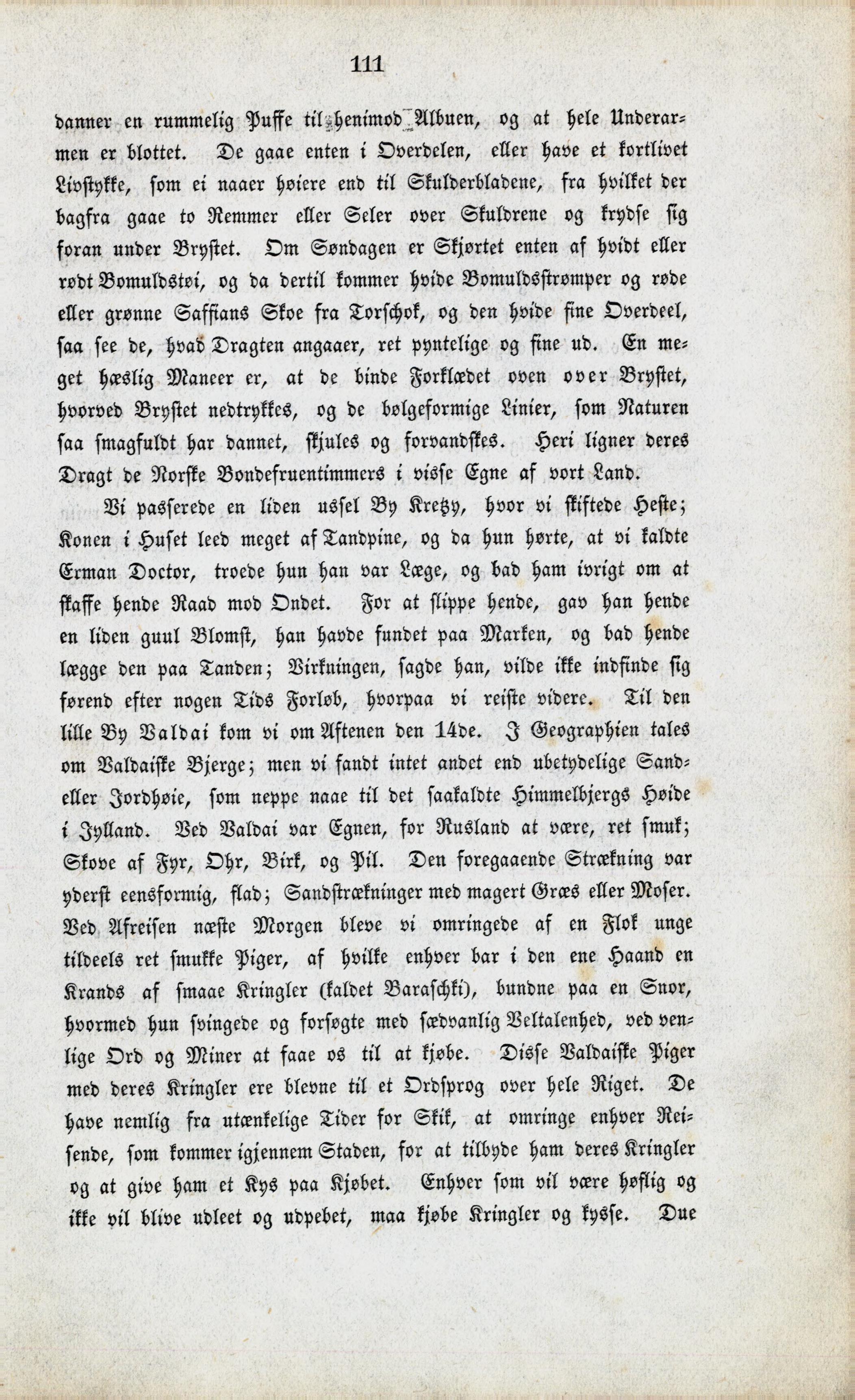 Full resolution (JPEG) - On this page / på denna sida - III. Reise fra Petersburg til Moscwa. — Chausseen halvfærdig, deraf flydende Uheld. — Nattequarteer hos en Bondefamilie. — Bøndernes Dragt. — Valdai, Pigernes Kringelhandel. — Torschof. — Tver