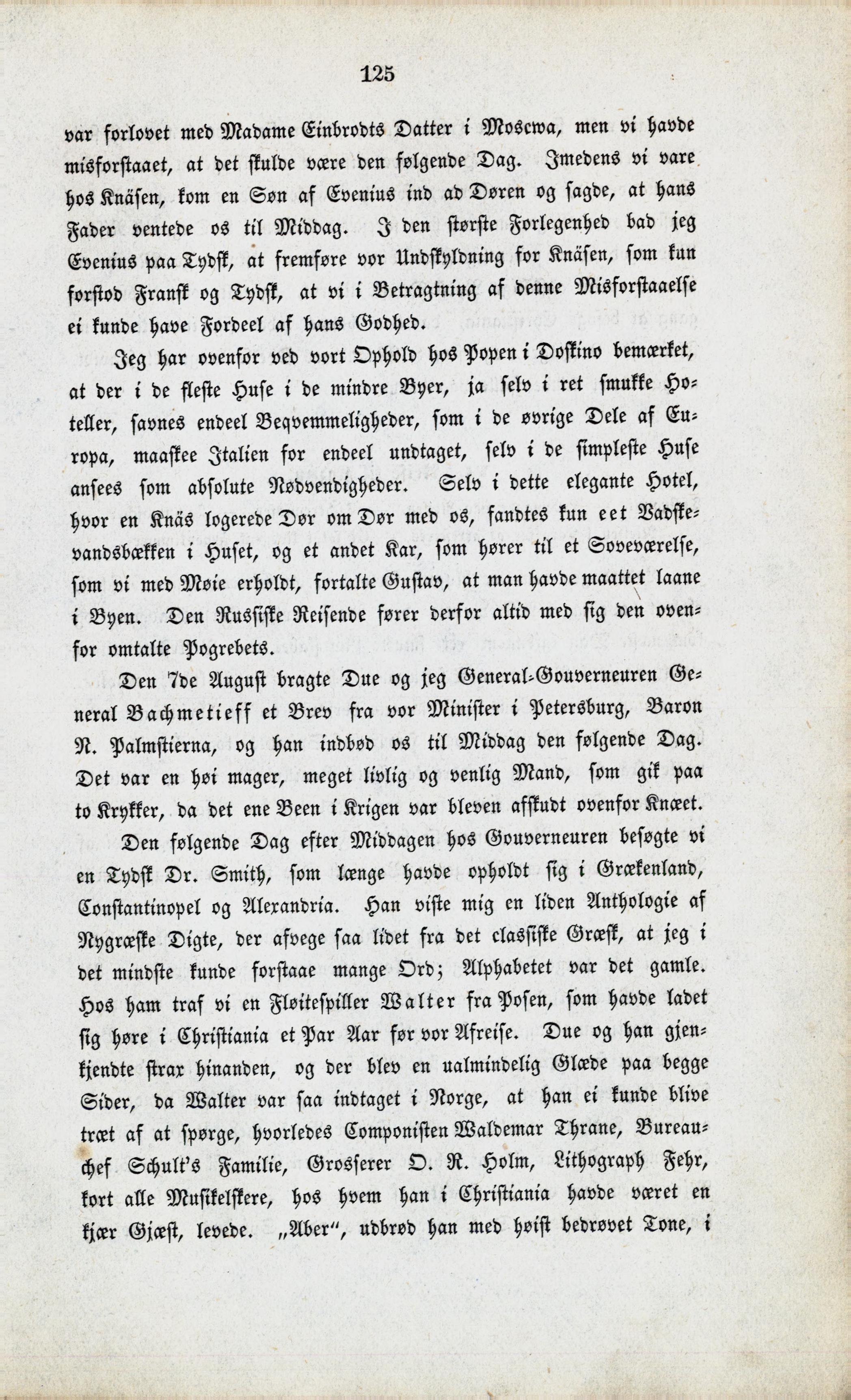 Full resolution (JPEG) - On this page / på denna sida - V. Reise til Nischni Novgorod. — Slette Veie. — Uveir. — Strid med en gammel adelig Dame i Sudogda. — Murom. — Landsbyen Doskino. — Logis hos en Pope. — Nischni Novgorod. — Det store aarlige Marked. — Besøg i en Moschée. — Handel med Madame Lebours. — Udlændiger ville med Flid ikke tale Russiskt correct. — Knäs Dabyan. — Savn af Beqvemmeligheder i Hotellerne. — Selskab hos Gouverneuren, General Bachmetieff. — Fløitespilleren Walter