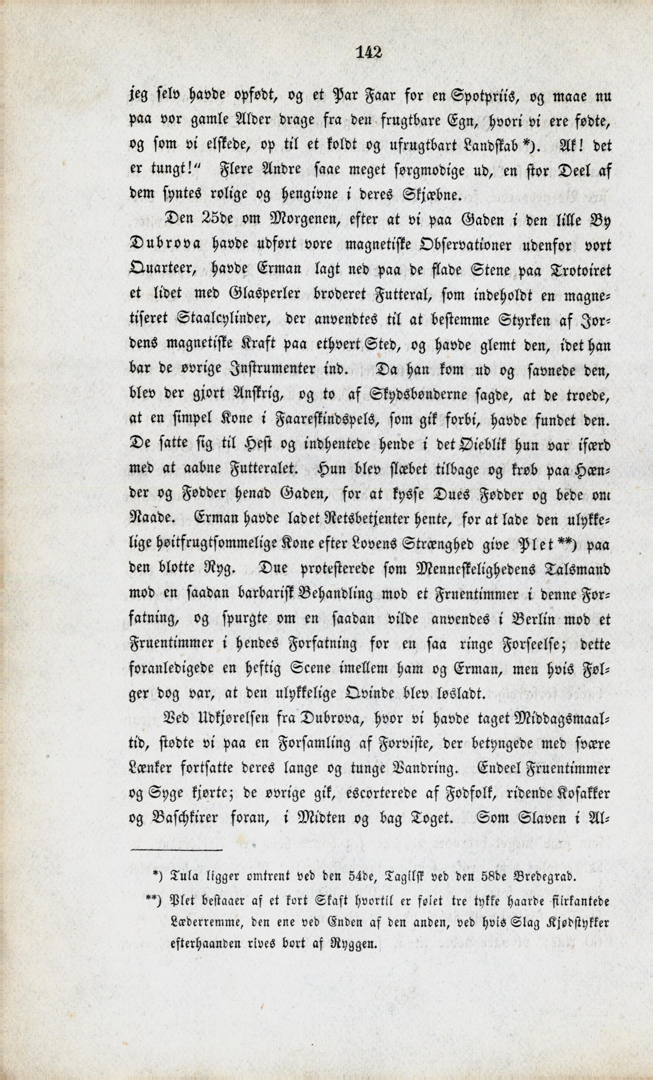 Full resolution (JPEG) - On this page / på denna sida - VIII. Reise til Jekatharinenburg. — Gjestfrihed i Malmisch. — Wotiäker. — Livegne solgte fra et Gods i Tula til Fabriken Nischni-Tagilsk i Ural. — Forhindret Grusomhed mod en Qvinde i Dubrowa. — Perm. — Hurtig Kjørsel i Rusland. — Russiskt Dampbad. — Den magnetiske Intensitets Tilvæxt ved Nærmelsen til den Sibiriske Magnetpol. — Transport af Forviiste. — Festlighed ved Indtog i Asien. — Ankomst til Jekatharinenburg