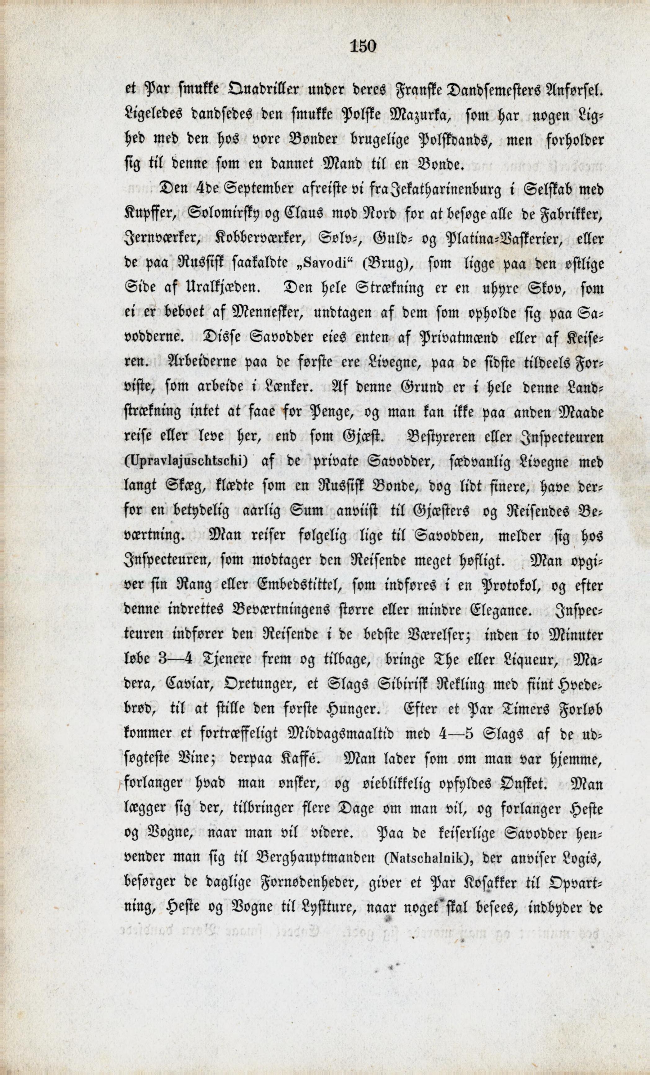 Full resolution (JPEG) - On this page / på denna sida - IX. Reise mod Nord langs Østsiden af Ural. — Professor Kupffer. — Solomirskys Selvskildring. — Byfogden Nitschajeff med Kone. — Bal i Klubben. — Afreise i Følge med Kupffer, Solomirsky og Apotheker Claus. — Sawodden (Fabrikken) Newiansk. — Peter den Stores Kareth. — Elegant Beværtning med Tokayer. — Nischni-Tagilsk. — Kuschwa. — Blagodat. — Moguler. — Stepan Tschumpin. — Nischni-Turinsk. — Werchoturie. — Bogoslowskie. — Bal hos Directeuren Begger. — Turinski-Rudniki. — Solomirsky som Physiognomist. — Kuschwa. — Bal hos Directeuren Iwanoff. — Bal hos Wolkoff. — Russisk Nationaldands. — Elegant Beværtning i Newiansk. — Chemikeren Gwetzow, Livegen