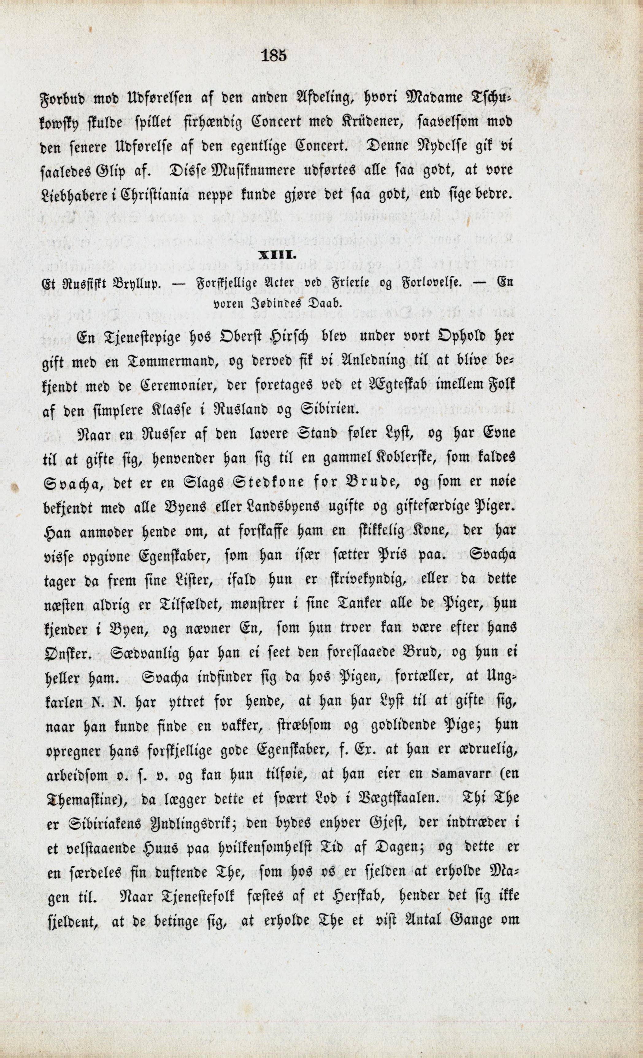 Full resolution (JPEG) - On this page / på denna sida - XII. Ophold i Tobolsk. — Breve fra Hjemmet. — Generalgouverneuren Wilielminoff. — General Brühls Soireer. — Generalpostdirecteuren Müller. — De forviste Adelsmænd Alabieff og Schatiloff. — Festligheter i Anledning af Enkekeiserinde Maria Feodorownas Fødselsdag. — Besøg hos Archierei. — Gjestfrihed i Dr. Fiandts og Oberste Hirschs Familier. — Vor Sproglærer Menger. — Blandede Ægteskaber ulykkelige. — Erman reiser til Obdorsk med Gustav. — En Soiree for vore Venner. — Prøve til en Concert, som blev afbrudt ved Efterretning om Enkekeiserindens Død - XIII. Et Russiskt Bryllup. — Forskjellige Acter ved Frierie og Forlovelse. — En voxen Jødindes Daab