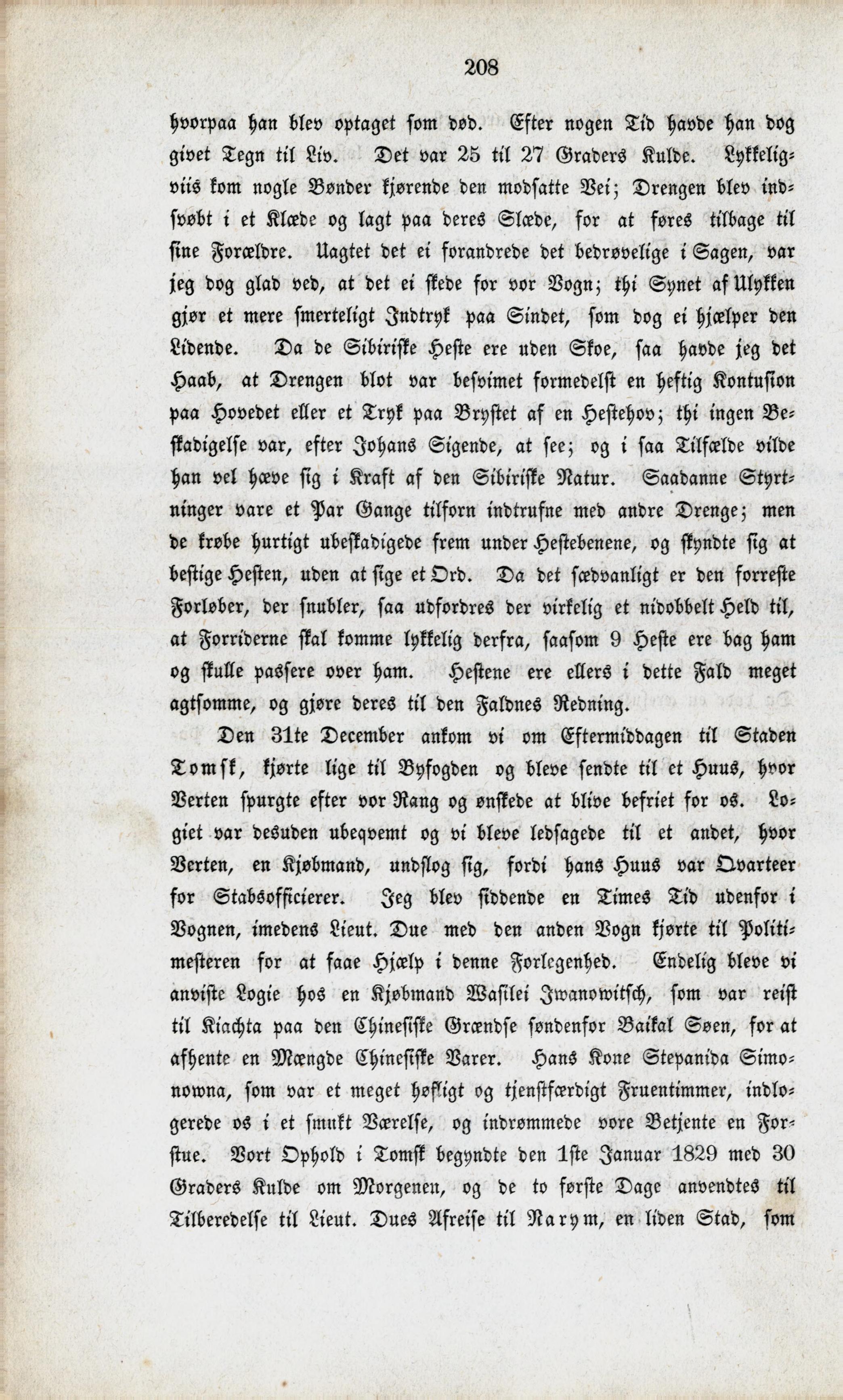 Full resolution (JPEG) - On this page / på denna sida - XIV. Afreise fra Tobolsk. — Ivan Schlau. — Besværlig Kjørsel i en Sibirisk Vinter. — Byrdefulde Æresbeviisninger i Kolyvan. — Sibiriske Bønders Haardførhed og Godmodighed. — Et Par ulykkelige Tilfælde. — Ophold i Tomsk. — Dues Reise til Narym. — Skildring af en Sibirisk Kjøbmands Huusholdning