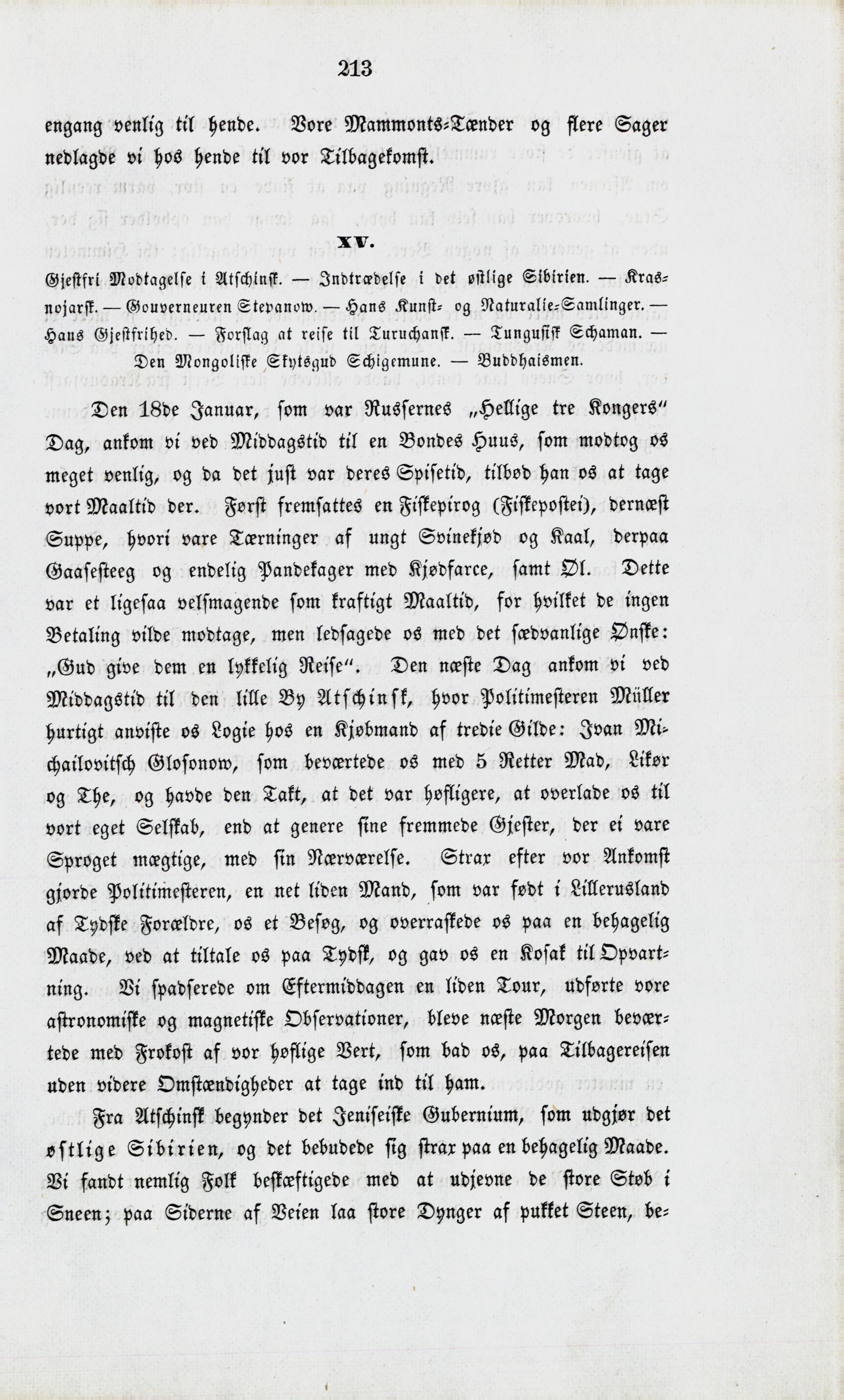 Full resolution (JPEG) - On this page / på denna sida - XIV. Afreise fra Tobolsk. — Ivan Schlau. — Besværlig Kjørsel i en Sibirisk Vinter. — Byrdefulde Æresbeviisninger i Kolyvan. — Sibiriske Bønders Haardførhed og Godmodighed. — Et Par ulykkelige Tilfælde. — Ophold i Tomsk. — Dues Reise til Narym. — Skildring af en Sibirisk Kjøbmands Huusholdning - XV. Gjestfri Modtagelse i Atschinsk. — Indtrædelse i det østlige Sibirien. — Krasnojarsk. — Gouverneuren Stepanow. — Hans Kunst- og Naturalie-Samlinger. — Hans Gjestfrihed. — Forslag at reise til Turuchansk. — Tungusisk Schaman. — Den Mongoliske Skytsgud Schigemune. — Buddaismen