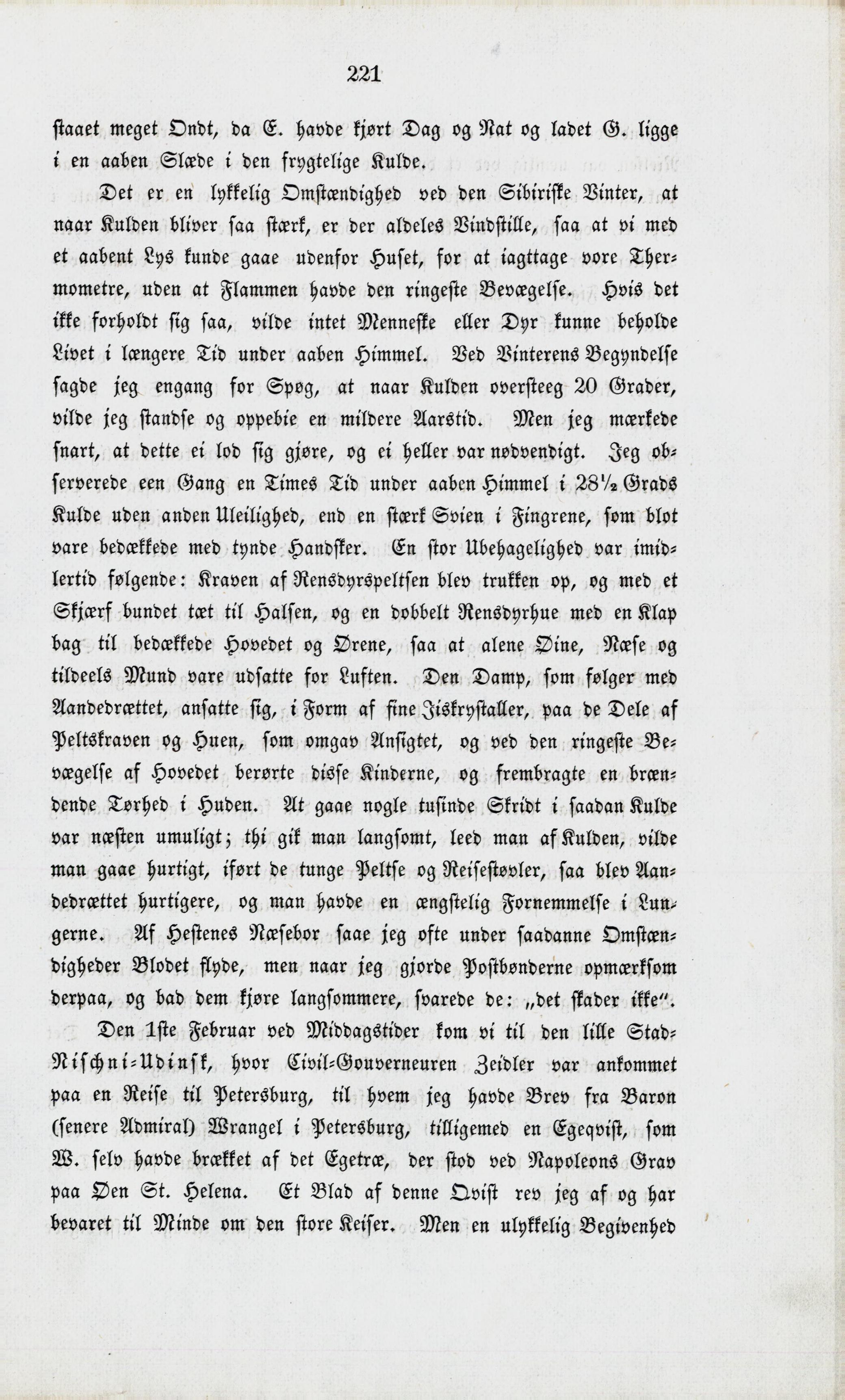 Full resolution (JPEG) - On this page / på denna sida - XVI. Sibirisk Kulde. — Qviksølvet fryser. — Nischni-Udinsk. — Nielsen overkjørt. — En Hest sønderrevet. — Johan Schlau faaer Afsked. — Ankomst til Irkutzk