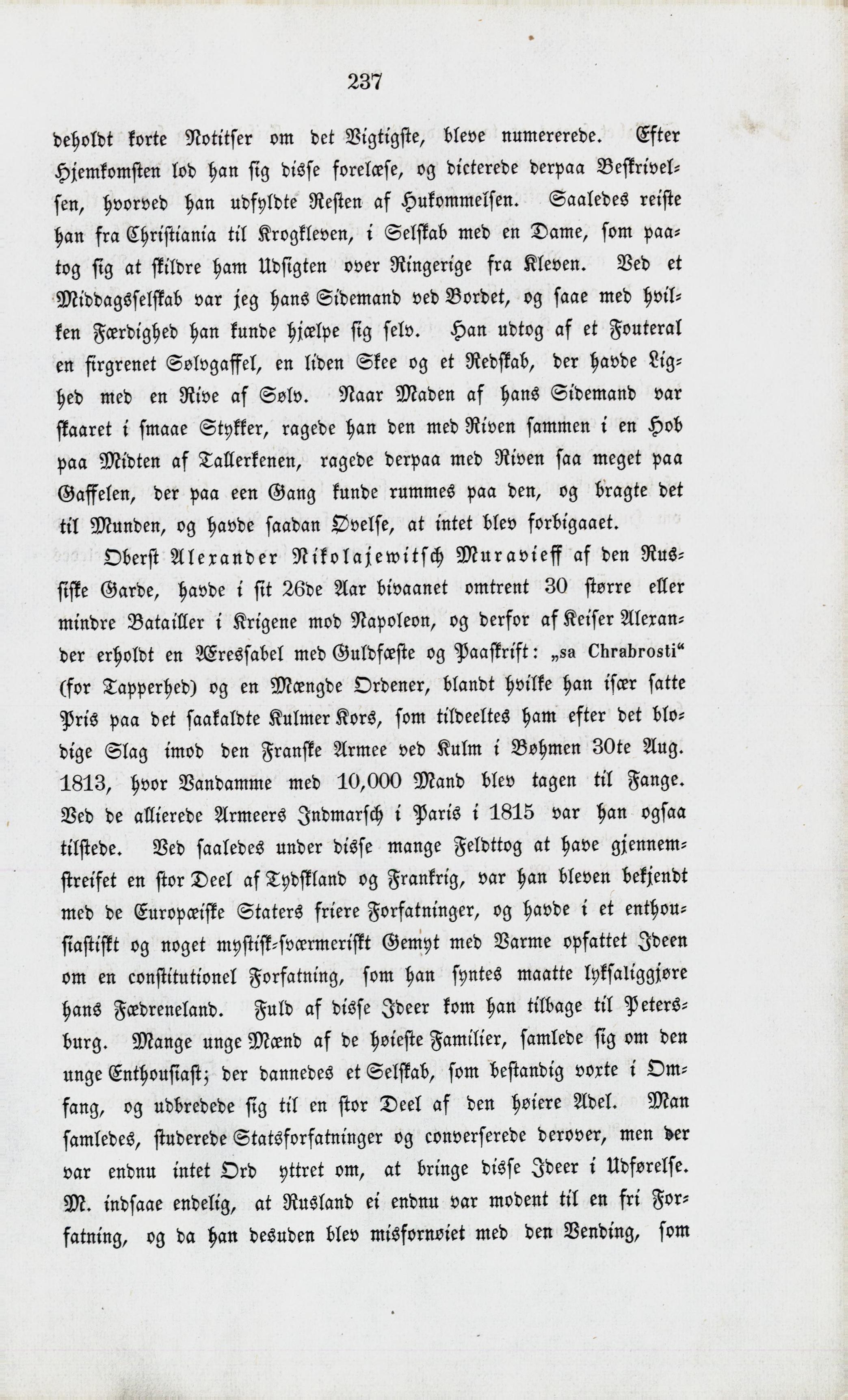 Full resolution (JPEG) - On this page / på denna sida - XVIII. Generalgouverneur Lavinsky. — Den blinde Reisebeskriver Hollman. — Oberst Muravieff. — Anledning til Opstanden i Petersburg i 1825. — Tre forviste Adelsmænd. — Oberstinde Børresen. — Religiøse Ceremonier ved den Russiske Paaskefest. — Carneval