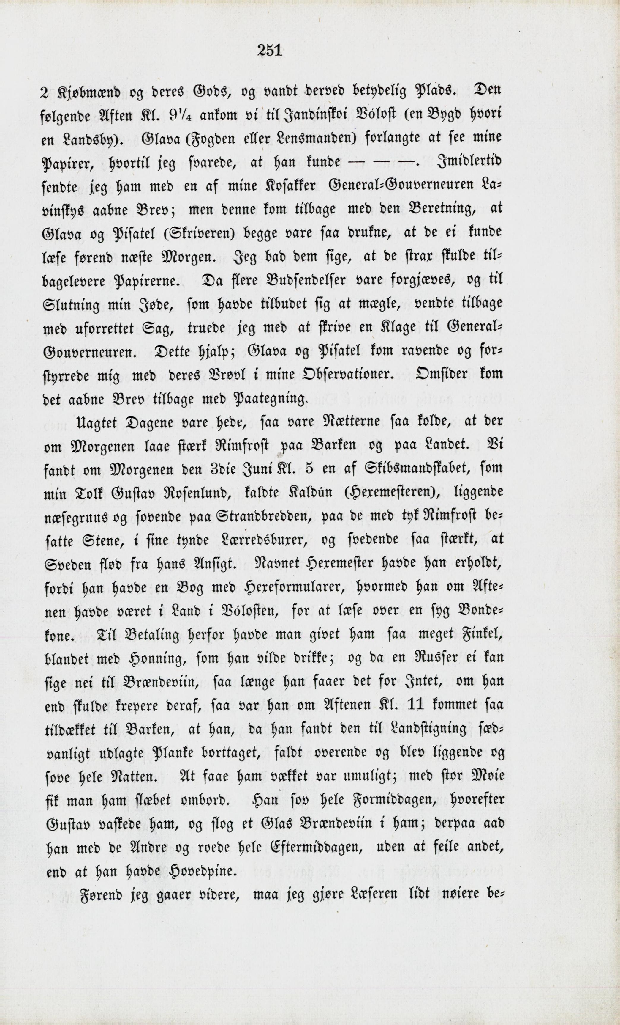 Full resolution (JPEG) - On this page / på denna sida - XIX. Reise til Jeniseisk paa Floderne Angara og Werchne-Tunguska paa Barken Dóbroje Namérenïe. — Afsked fra Lavinsky og Muravieffs Familie. — Blinde Passagerer paa Barken. — Jøden Schmerka. — Gustavs Charakteristik. — Nedfart over Fossene Pochmelie, Pianoi, Buyk og Padun. — Assessor Komlevsky i Keschemy. — Deputation med Foræringer fra Bønderne i Tschadobetz. — Strænge Jødiske Afholdenheds-Regler. — Gustavs Forelæsninger af Walter Scots Ivanhoe. — Ankomst til Jeniseisk