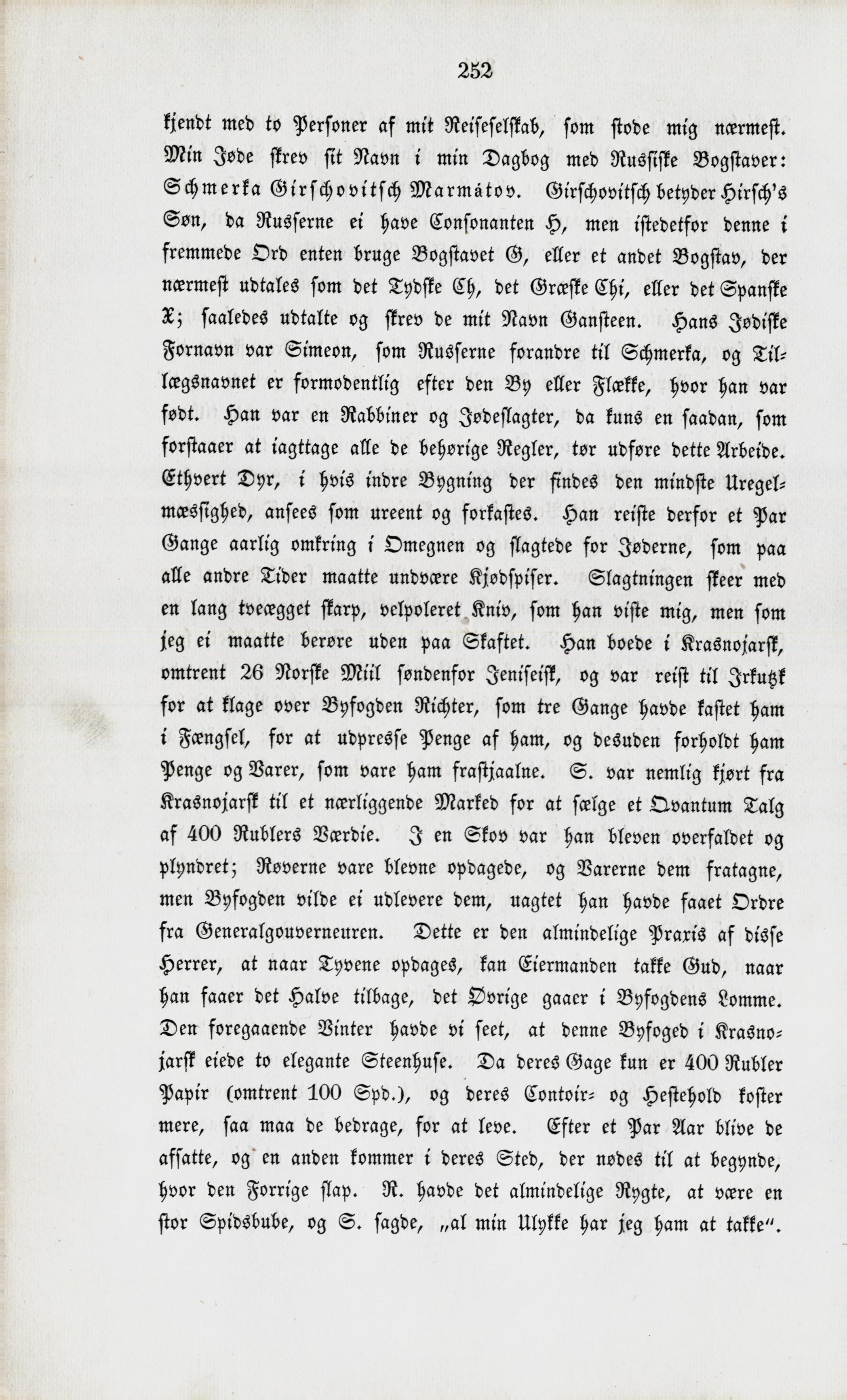 Full resolution (JPEG) - On this page / på denna sida - XIX. Reise til Jeniseisk paa Floderne Angara og Werchne-Tunguska paa Barken Dóbroje Namérenïe. — Afsked fra Lavinsky og Muravieffs Familie. — Blinde Passagerer paa Barken. — Jøden Schmerka. — Gustavs Charakteristik. — Nedfart over Fossene Pochmelie, Pianoi, Buyk og Padun. — Assessor Komlevsky i Keschemy. — Deputation med Foræringer fra Bønderne i Tschadobetz. — Strænge Jødiske Afholdenheds-Regler. — Gustavs Forelæsninger af Walter Scots Ivanhoe. — Ankomst til Jeniseisk