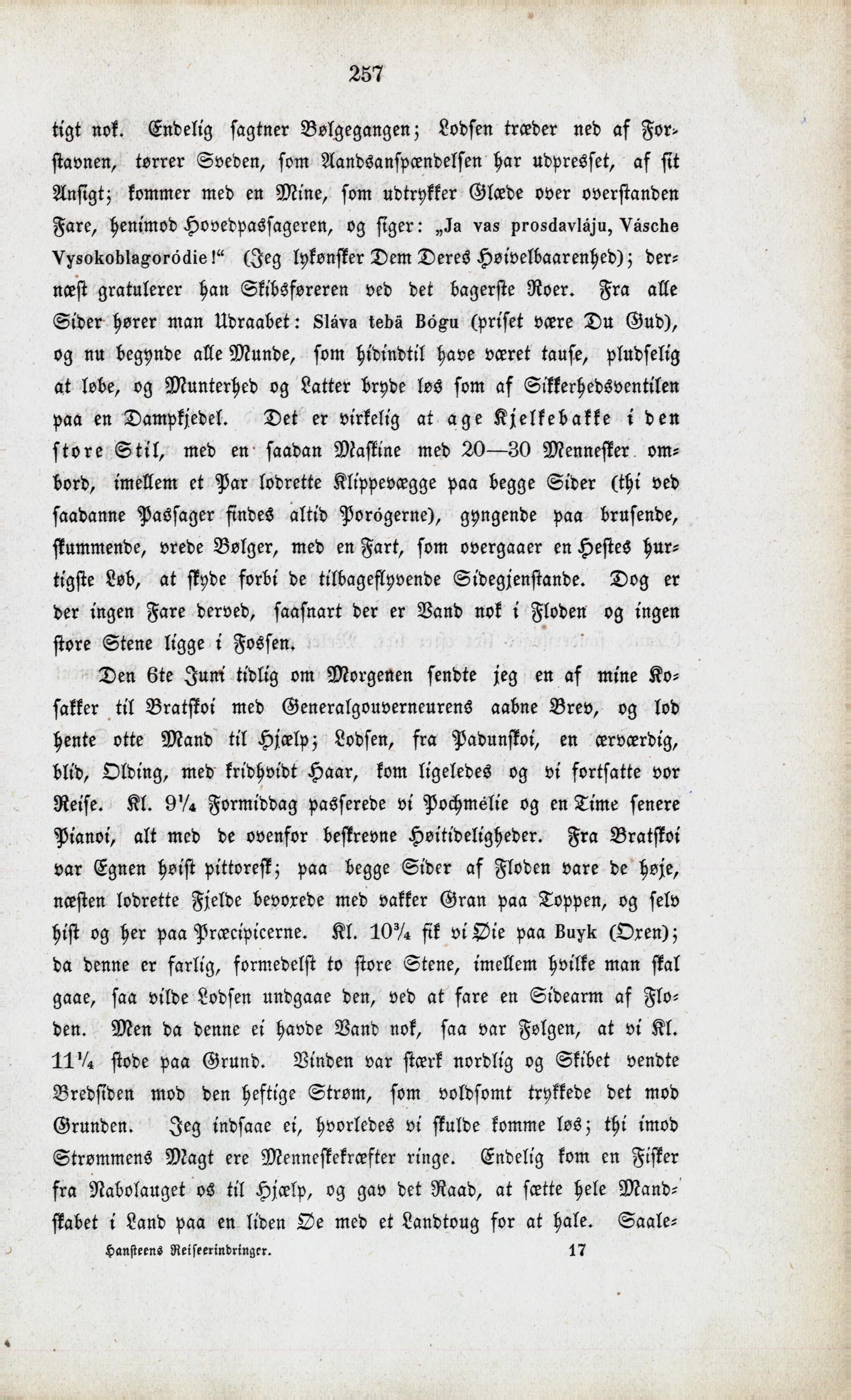 Full resolution (JPEG) - On this page / på denna sida - XIX. Reise til Jeniseisk paa Floderne Angara og Werchne-Tunguska paa Barken Dóbroje Namérenïe. — Afsked fra Lavinsky og Muravieffs Familie. — Blinde Passagerer paa Barken. — Jøden Schmerka. — Gustavs Charakteristik. — Nedfart over Fossene Pochmelie, Pianoi, Buyk og Padun. — Assessor Komlevsky i Keschemy. — Deputation med Foræringer fra Bønderne i Tschadobetz. — Strænge Jødiske Afholdenheds-Regler. — Gustavs Forelæsninger af Walter Scots Ivanhoe. — Ankomst til Jeniseisk