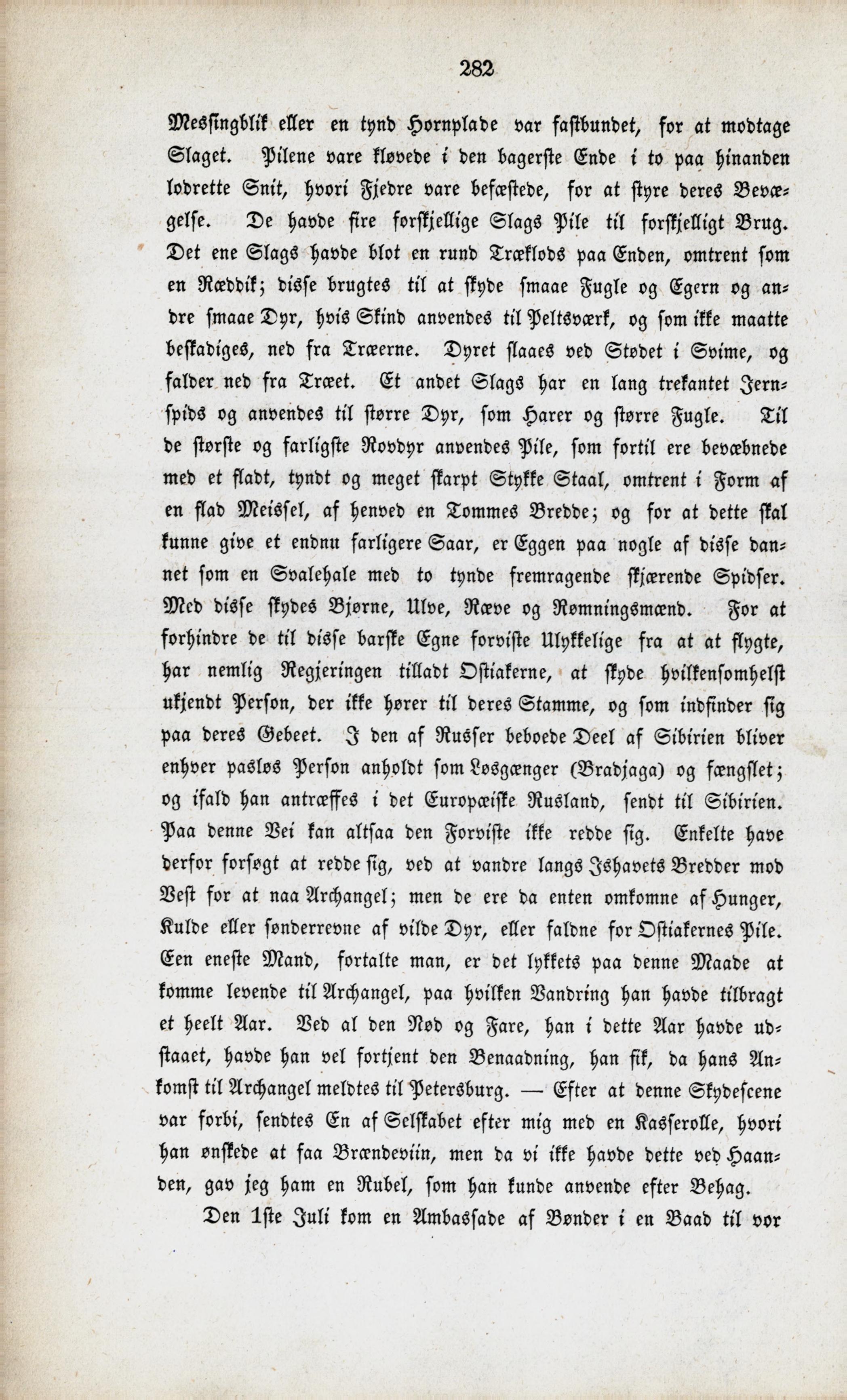 Full resolution (JPEG) - On this page / på denna sida - XXI. Reise til Turuchansk. — Urigtigheden af de Sibiriske Karter. — Fartøiet drages paa Floden af Heste, Mennesker eller Hunde. — Skipperen Schadrin. — Ostiakernes Bueskydning. — Ansøgning fra Secten Upadajuschtschi. — Plage af Mygg. — Troitzkoi Kloster. — Munken Tichon. — Legende om Prikaschtschikken Vasilei Mutschennik