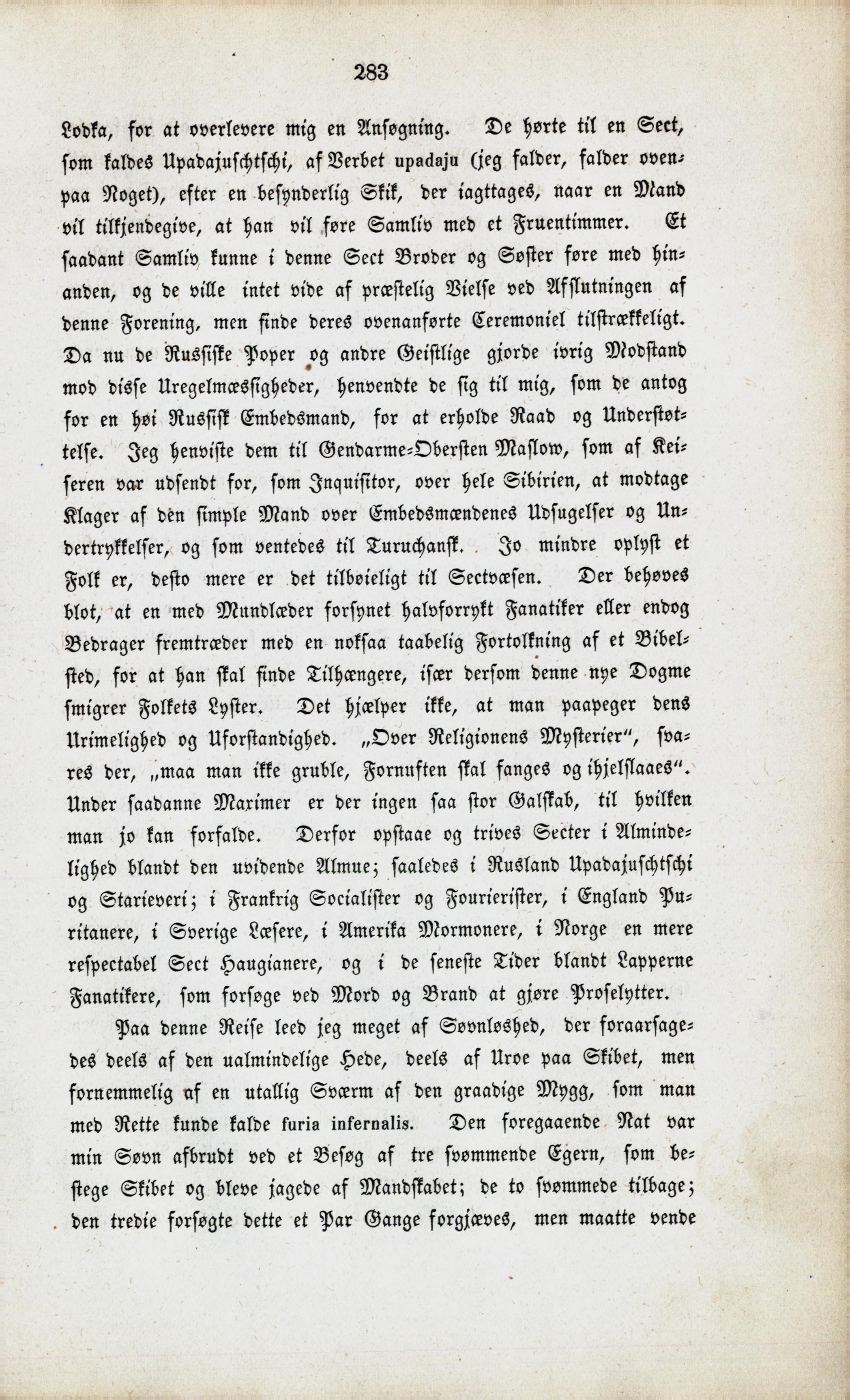 Full resolution (JPEG) - On this page / på denna sida - XXI. Reise til Turuchansk. — Urigtigheden af de Sibiriske Karter. — Fartøiet drages paa Floden af Heste, Mennesker eller Hunde. — Skipperen Schadrin. — Ostiakernes Bueskydning. — Ansøgning fra Secten Upadajuschtschi. — Plage af Mygg. — Troitzkoi Kloster. — Munken Tichon. — Legende om Prikaschtschikken Vasilei Mutschennik
