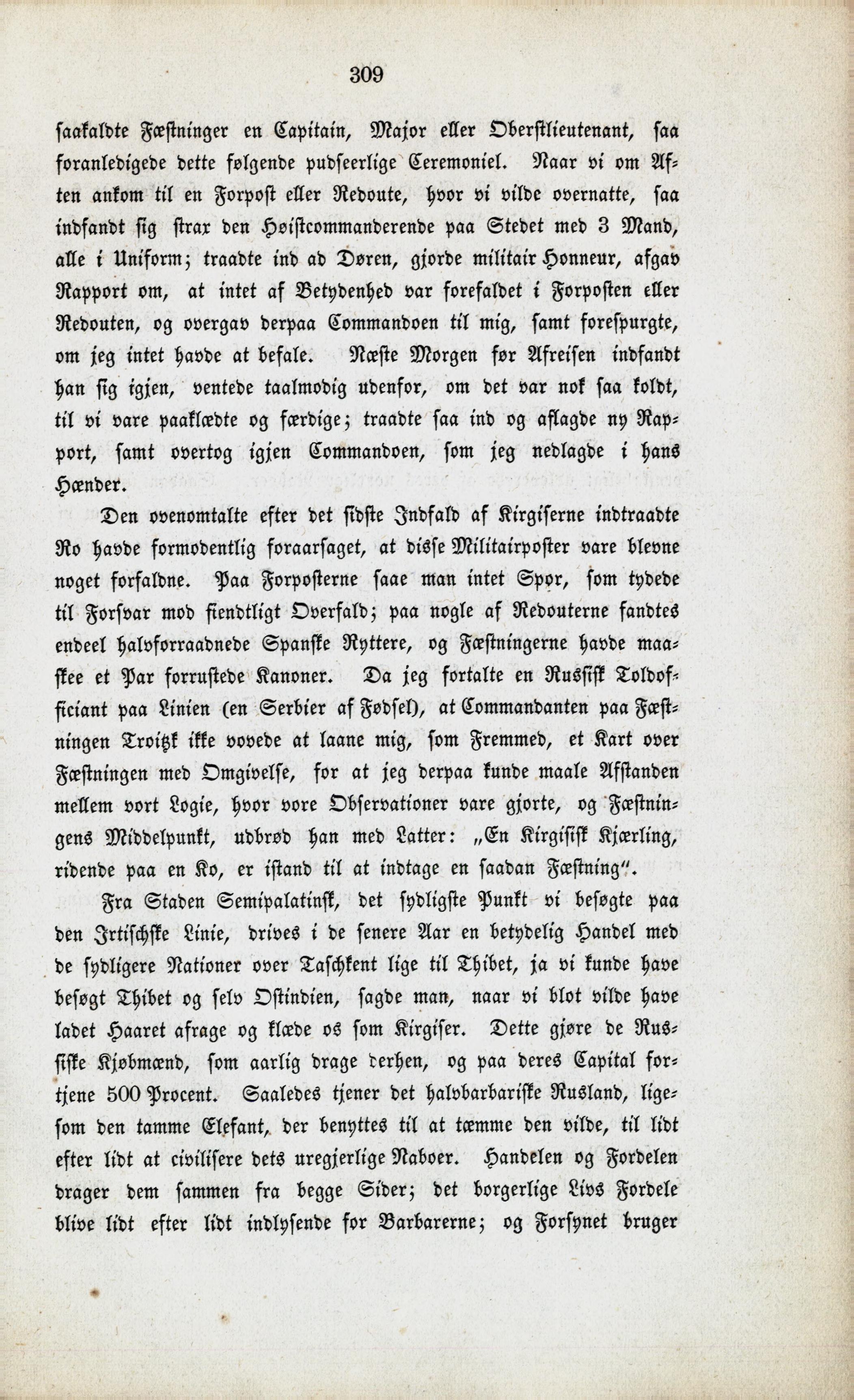 Full resolution (JPEG) - On this page / på denna sida - XXIV. Grændselinierne mod Kirgiserne. — Jeg faaer Commando over Redouterne. — Russernes Handel paa Thibet og Ostindien. — Gouverneuren St. Laurent i Omsk. — Humboldts Æresbeviisninger paa denne Route. — Fæstningen Troitzk. — Beretning om Cholera i Orenburg tvinger os til at gjøre en besværlig Omvei. — Bergstaden Slatoust med Vaabenfabrik. — Directeuren v. Acht. — Staden Ufa. — Ankomst til Orenburg