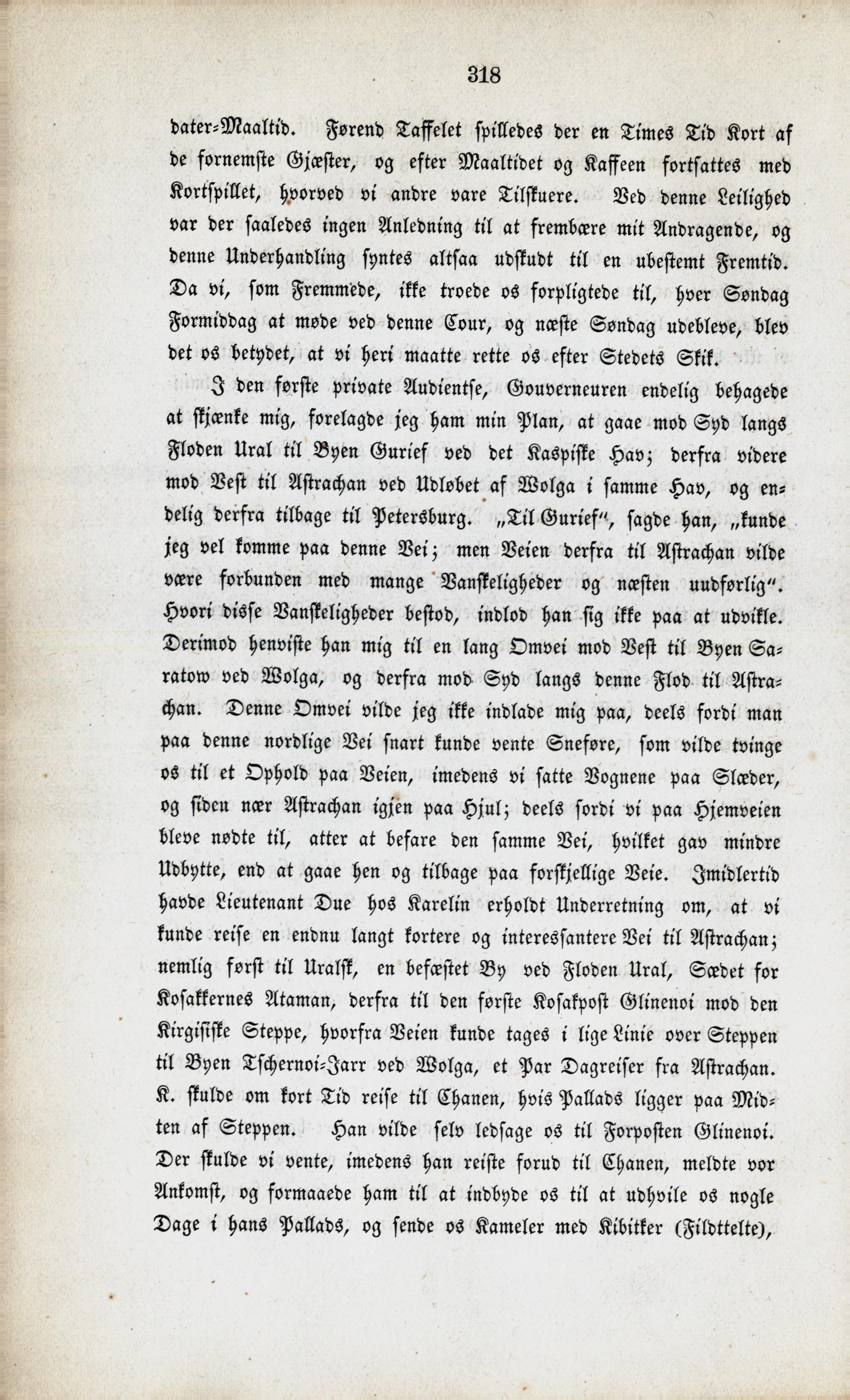 Full resolution (JPEG) - On this page / på denna sida - XXV. Orenburg. — Den Asiatiske Gaard. — Karelin, Secretair hos den Kirgisiske Chan Dschanger. — Krigsgouverneuren General von Essen. — Middagsselskab hos ham. — Han gjør Vanskeligheder ved at tillade mig at reise over den Kirgisiske Steppe. — Hans Dom om von Humboldt. — Besøg til Saltbruddet og Fæstningen Iletskaia Sastschita. — Afreise til Steppen