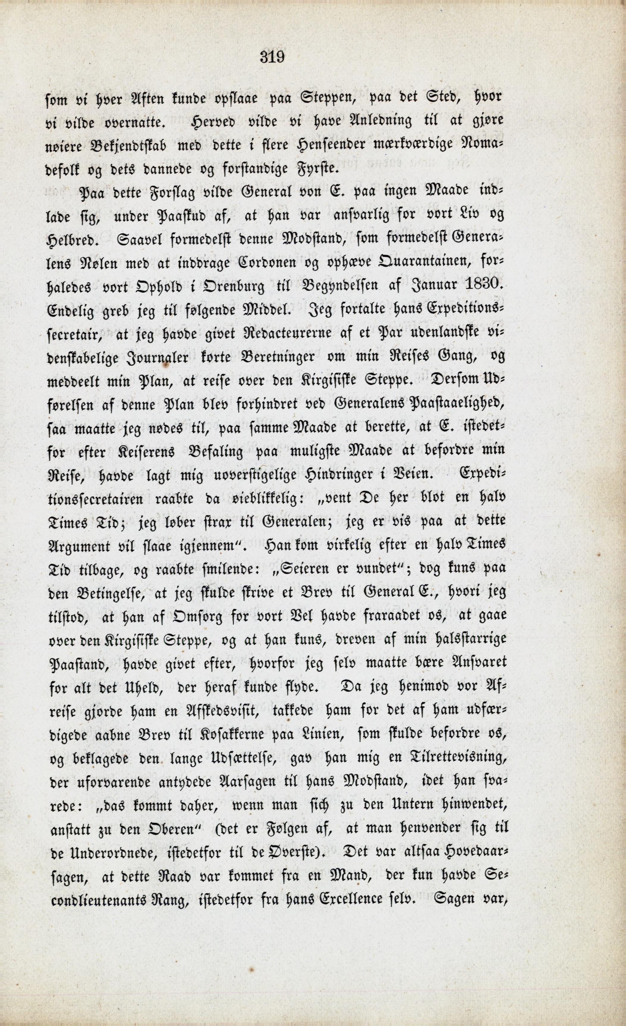 Full resolution (JPEG) - On this page / på denna sida - XXV. Orenburg. — Den Asiatiske Gaard. — Karelin, Secretair hos den Kirgisiske Chan Dschanger. — Krigsgouverneuren General von Essen. — Middagsselskab hos ham. — Han gjør Vanskeligheder ved at tillade mig at reise over den Kirgisiske Steppe. — Hans Dom om von Humboldt. — Besøg til Saltbruddet og Fæstningen Iletskaia Sastschita. — Afreise til Steppen
