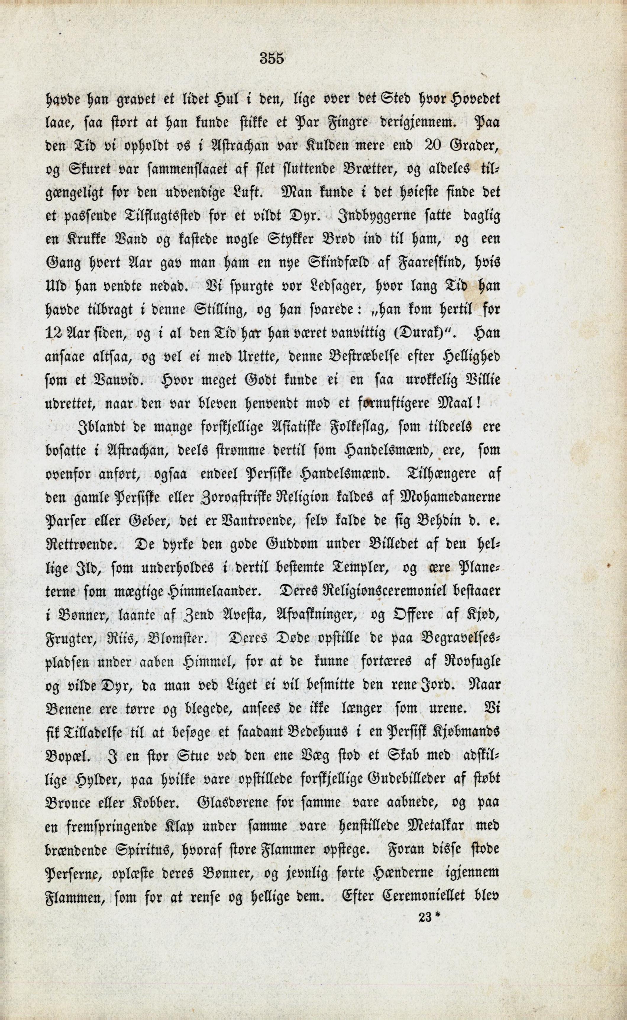 Full resolution (JPEG) - On this page / på denna sida - XXVII. Ophold i Astrachan. — Æressag med en Russisk Lieutenant. — En Hinduisk Fakir. — Persisk Svulst. — Natur-Undere i Grusien og Schirvan. — Den evige Ild. — Naphta Kilder. — Voxende Bjerge. — Argonauter-Toget strander paa Iis