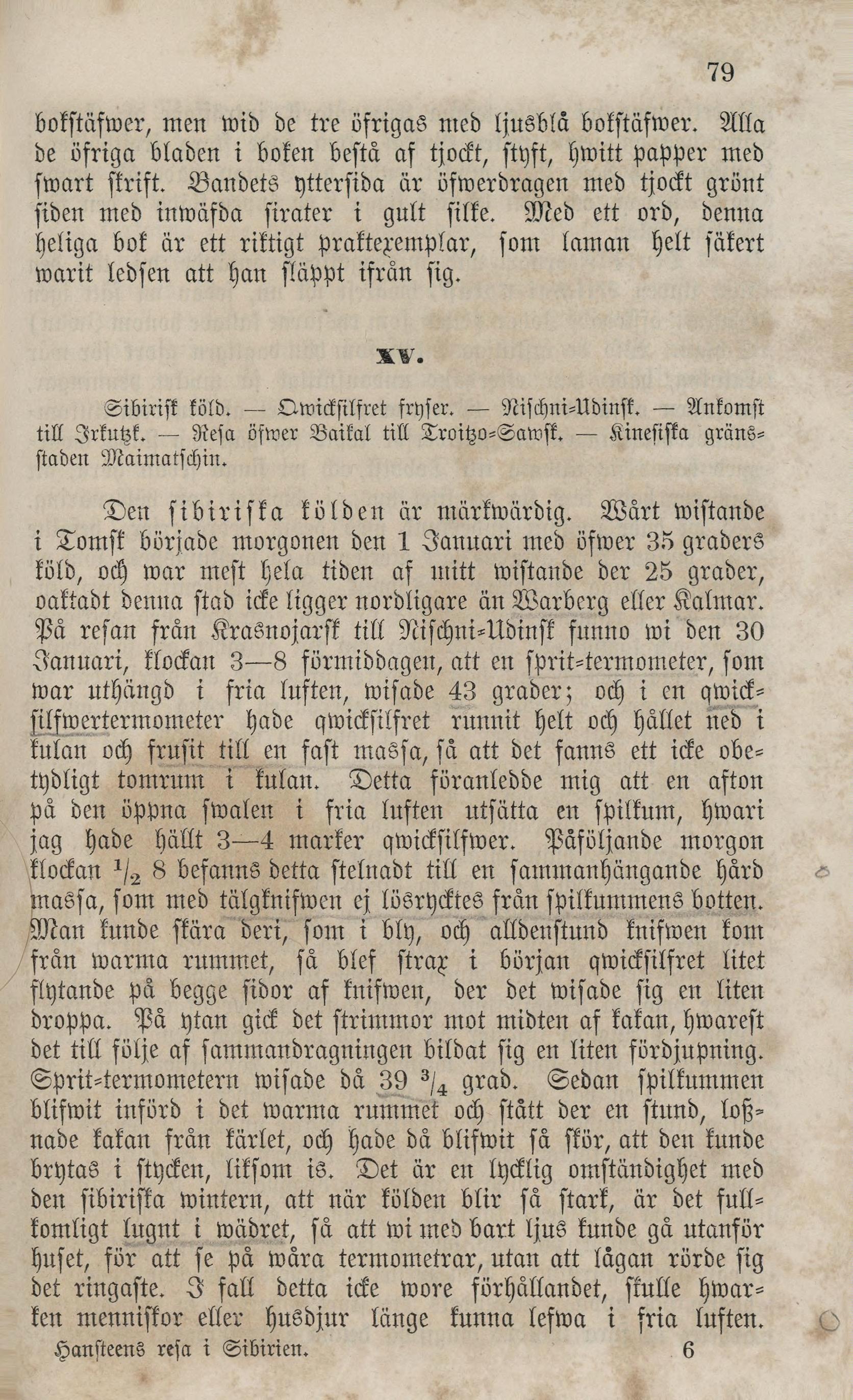 Full resolution (JPEG) - On this page / på denna sida - XIV. Inträdet i östra Sibirien. — Krasnojarsk. — Guvernör Stepanow. — Förslag att resa till Turuchansk. — Tungusisk Schaman. — Den mongoliska skyddsguden Schigemune. — Buddaismen - XV. Sibirisk köld. — Qwicksilfret fryser. — Nischni-Udinsk. — Ankomst till Irkutzk. — Resa öfwer Baikal till Troitzo-Sawsk. — Kinesiska gränsstaden Maimatschin