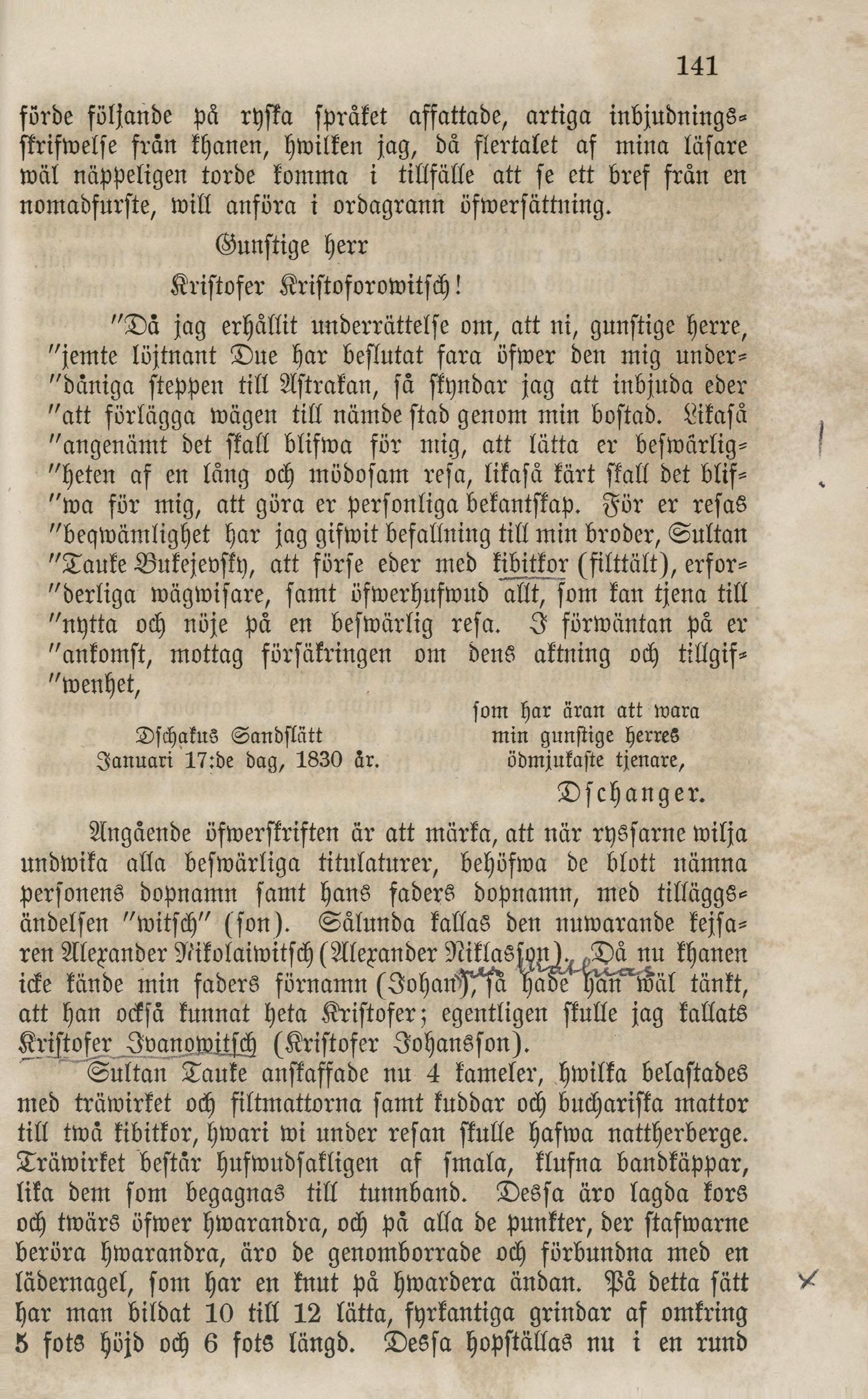 Full resolution (JPEG) - On this page / på denna sida - XXIV. Resa från Orenburg till Astrakan. — Resa öfwer kirgiser-steppen på kameler. — Wistande hos kirgiser-khanen i hans palats midt på steppen. — Besök hos kalmuk-fursten Tjumén. — Ankomst till Astrakan