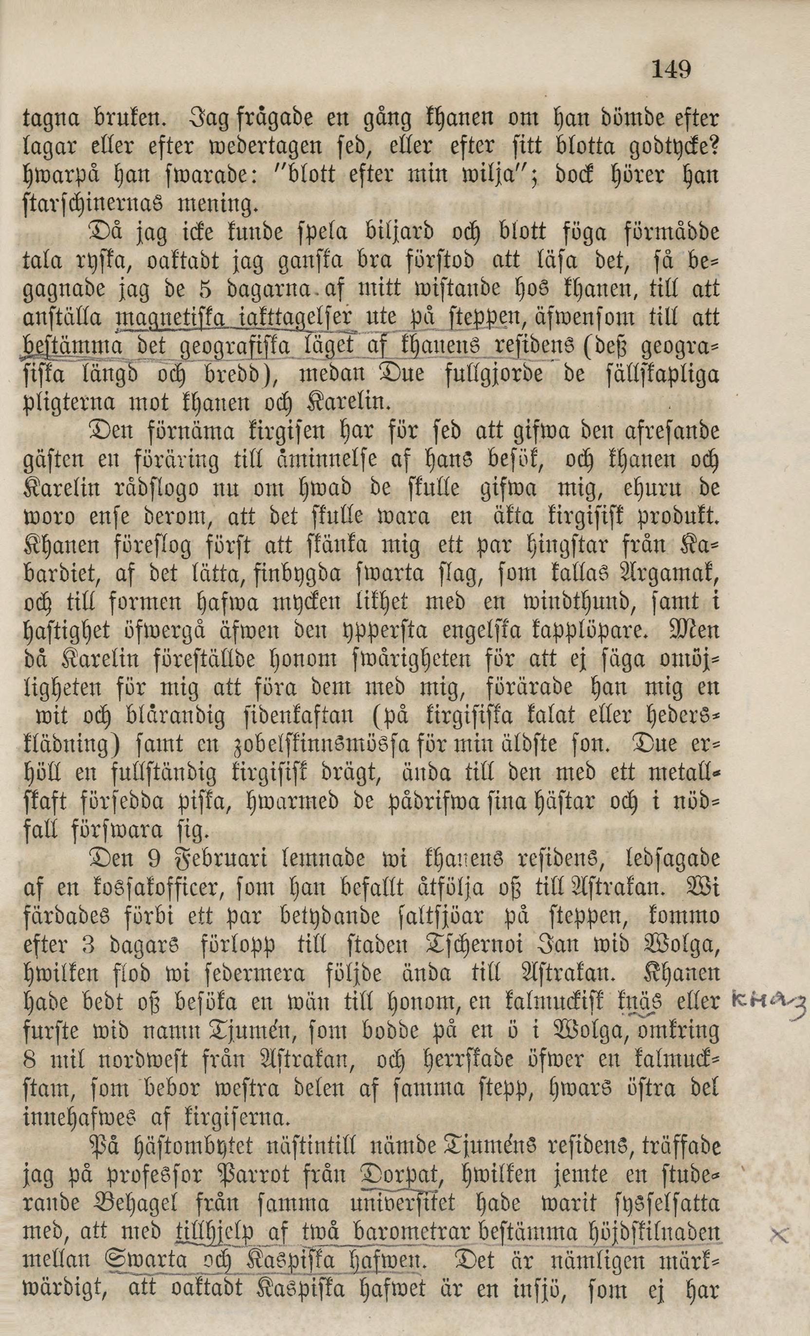 Full resolution (JPEG) - On this page / på denna sida - XXIV. Resa från Orenburg till Astrakan. — Resa öfwer kirgiser-steppen på kameler. — Wistande hos kirgiser-khanen i hans palats midt på steppen. — Besök hos kalmuk-fursten Tjumén. — Ankomst till Astrakan