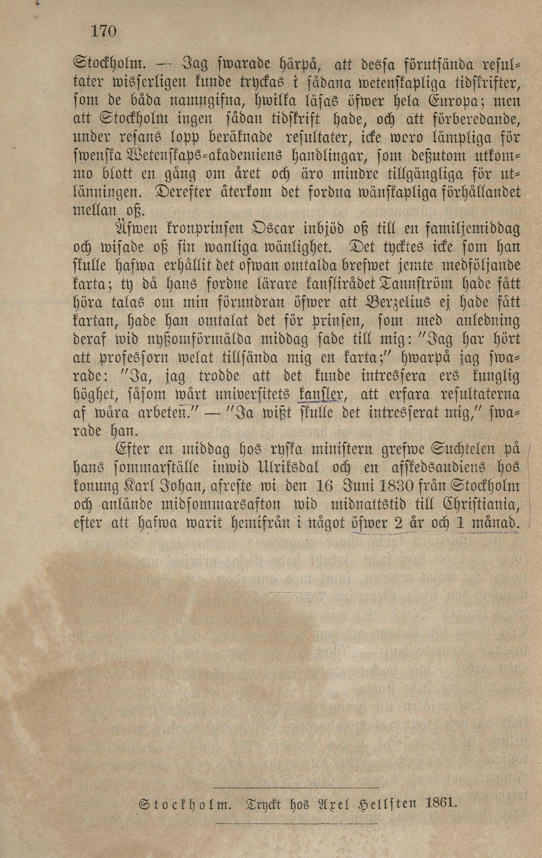 Stockholm. Tryckt hos Axel Hellsten 1861.