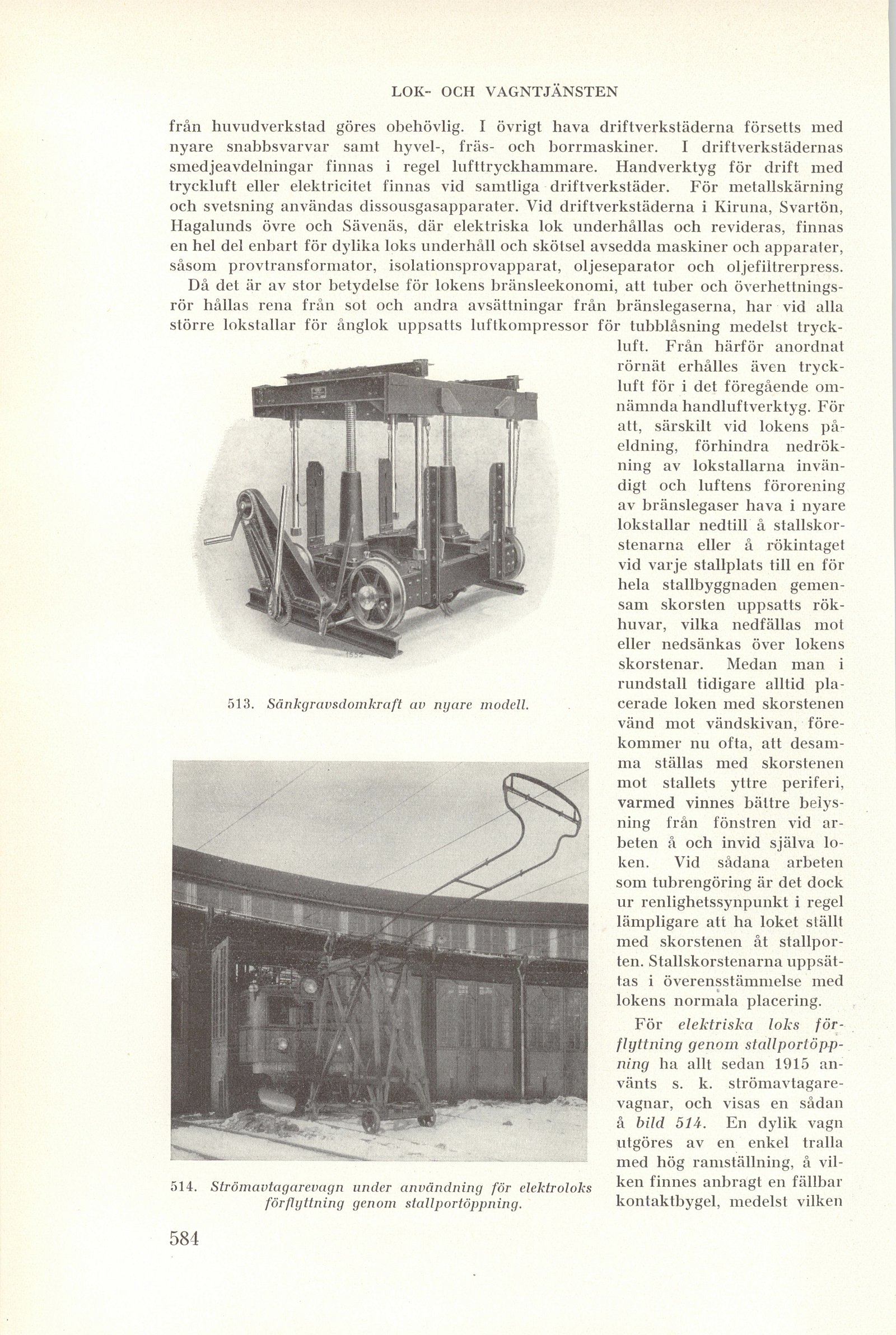 | 514. Strömavtagarevagn under användning för elektroloks förflyttning genom stallportöppning. |