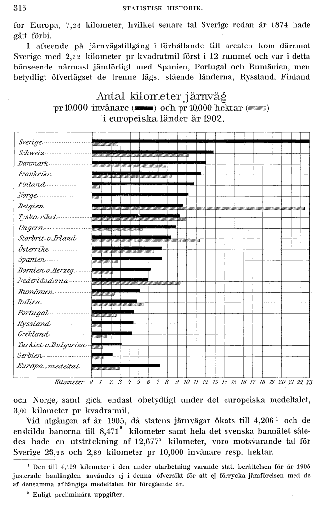 1 Den till 4 199 kilometer i den under utarbetning varande stat. berättelsen för år 1905 justerade banlängden användes ej i denna öfversikt för att ej förrycka jämförelsen med de af densamma afhängiga medeltalen för föregående år.