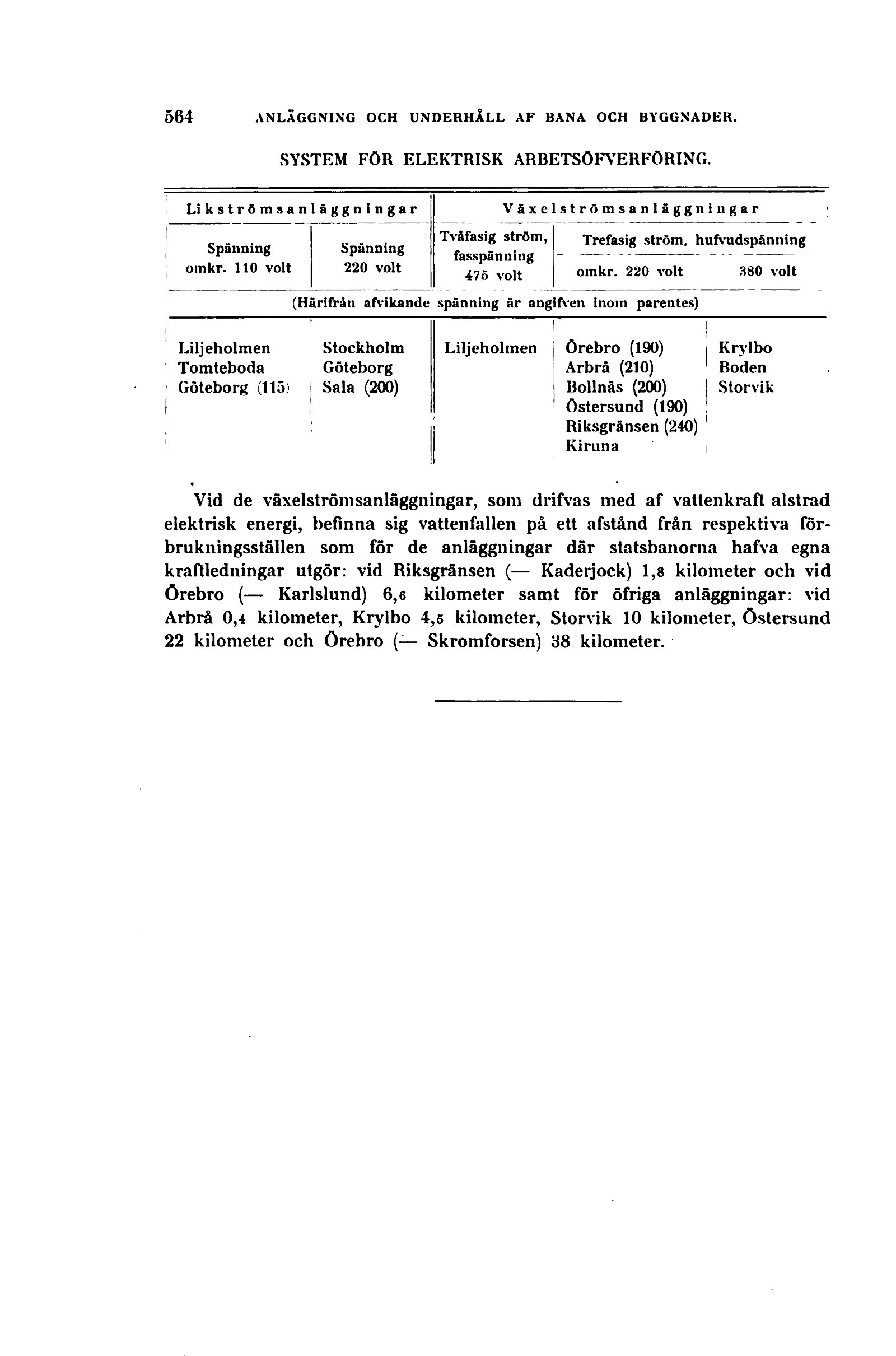 Spänning 1 o in kr. 110 volt t Spänning 220 volt Tvåfasig ström, fasspänning 476 volt Trefasig ström, hufvudspänning omkr. 220 volt 380 volt