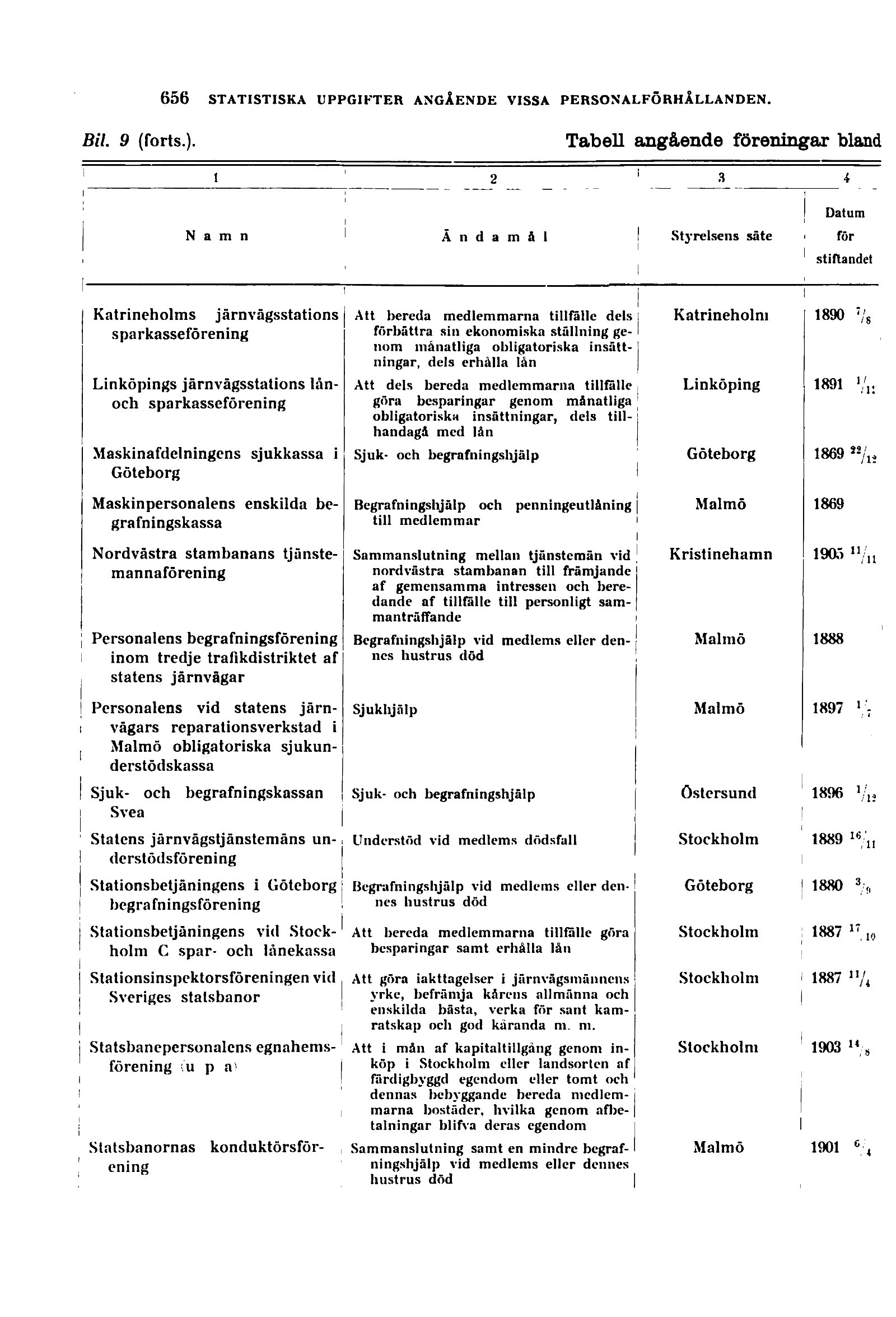 Bil. 9 (forts.). Tabell angående föreningar bland