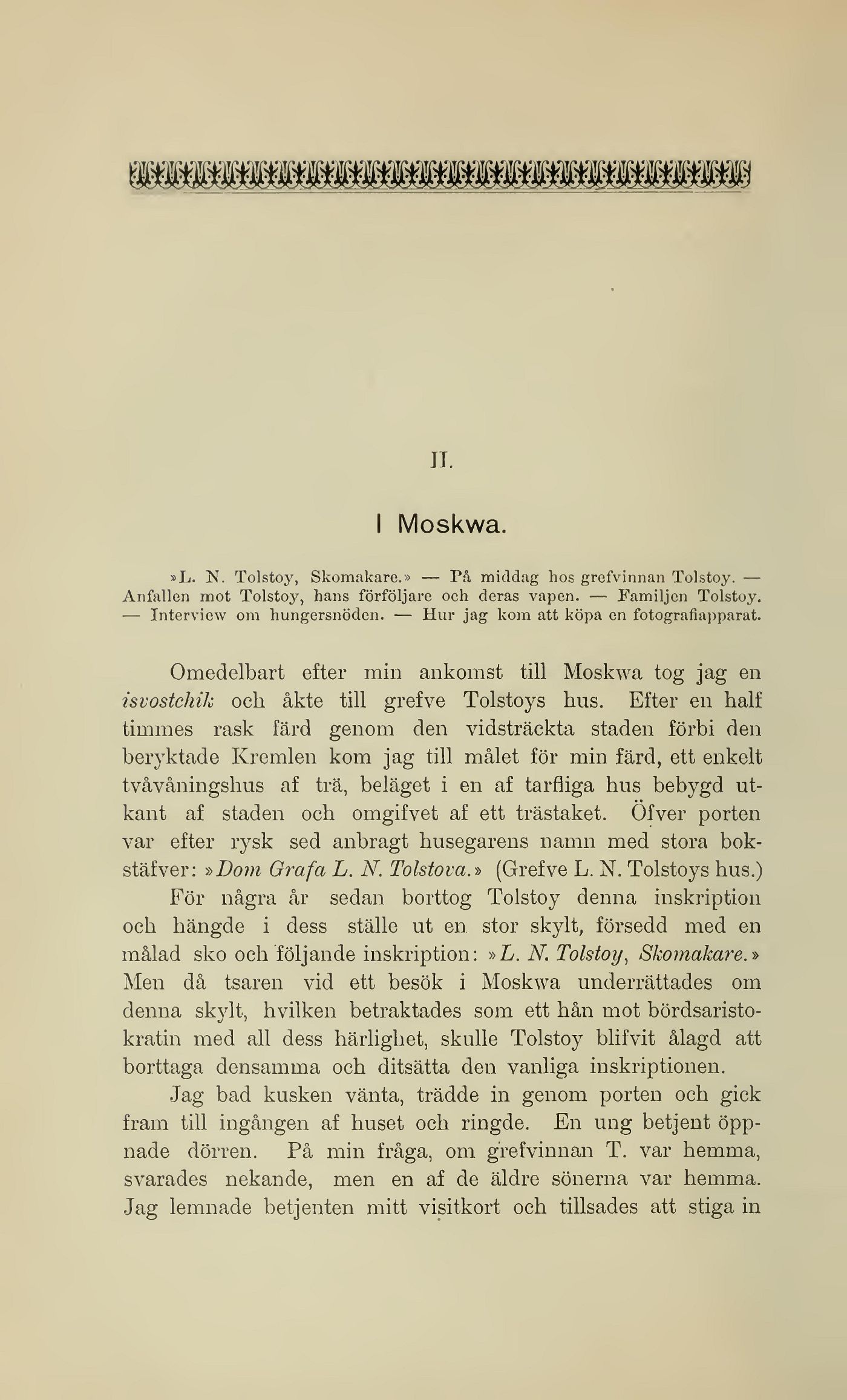 isvostchik och åkte till grefve Tolstoys hus. Efter en half