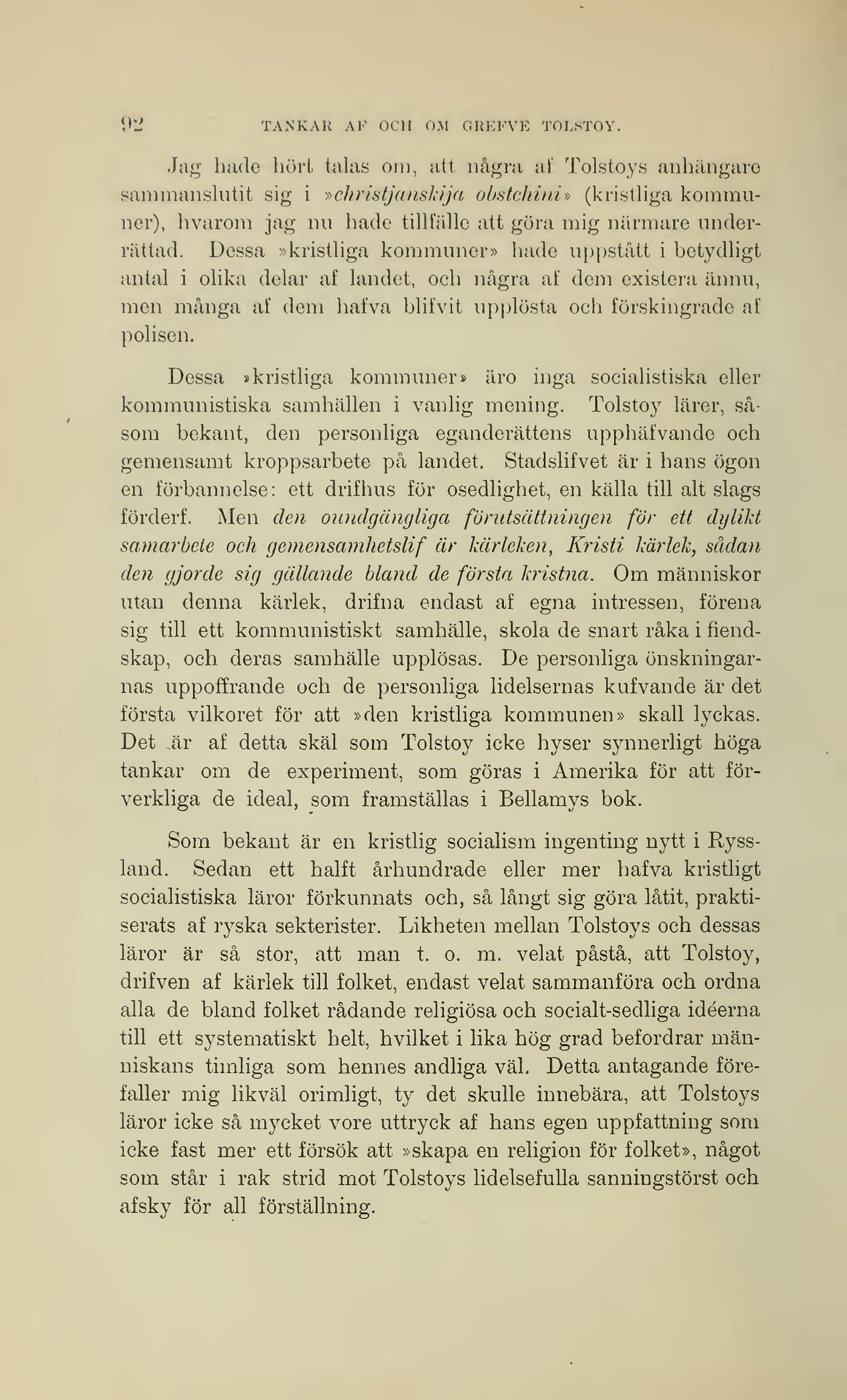 kommunistiska samhällen i vanlig mening. Tolstoy lärer,