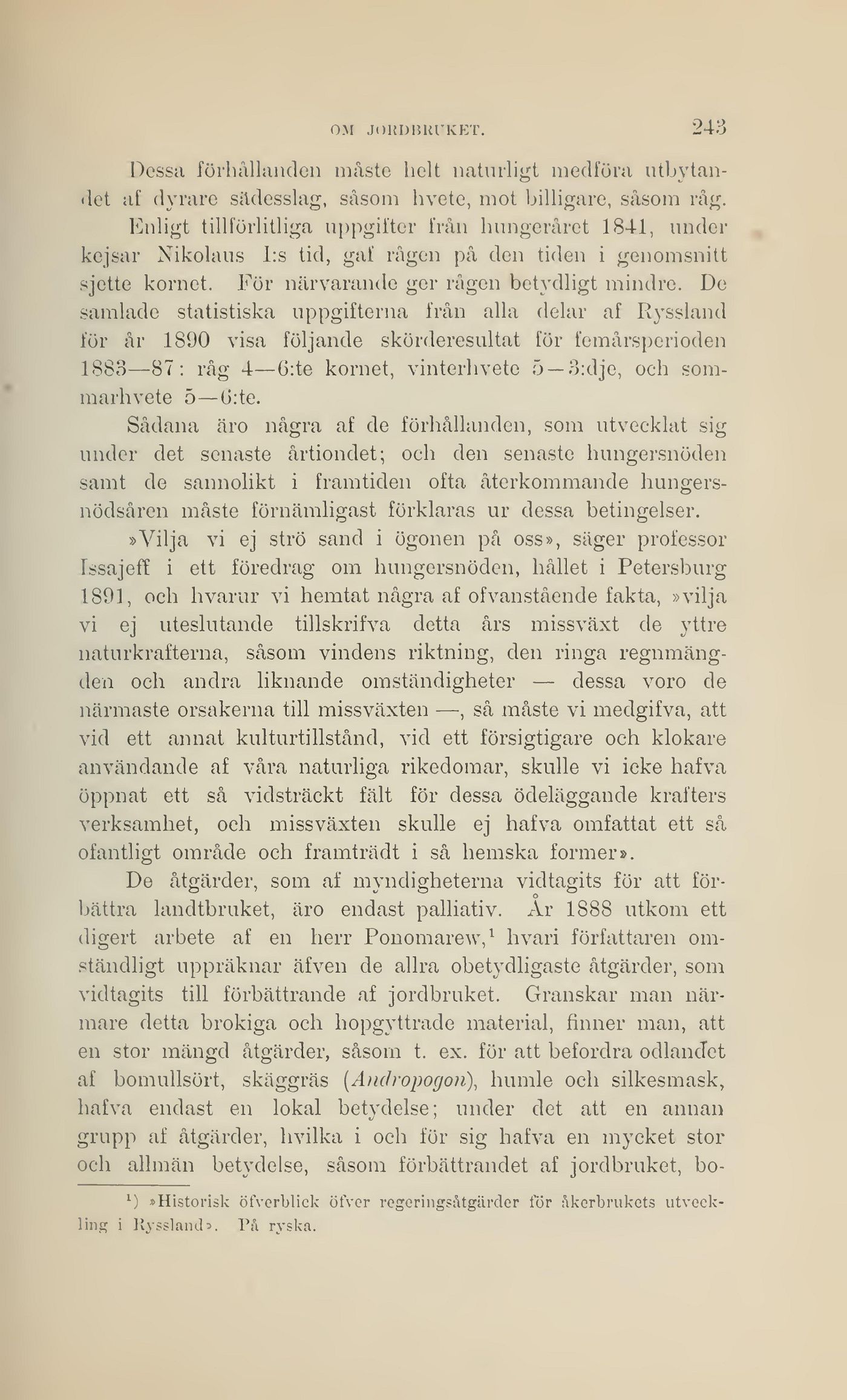 kejsar Nikolaus l:s tid, gaf rågen på den tiden i genomsnitt