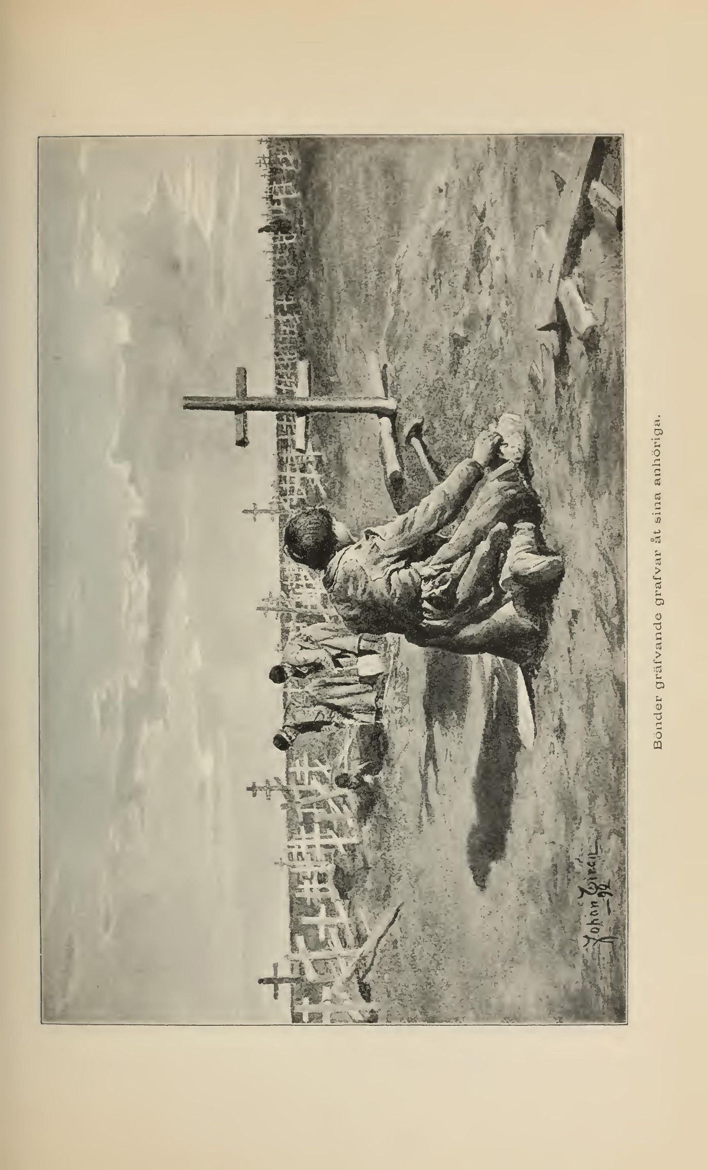 Bönder gräfvande grafvar åt sina anhöriga.