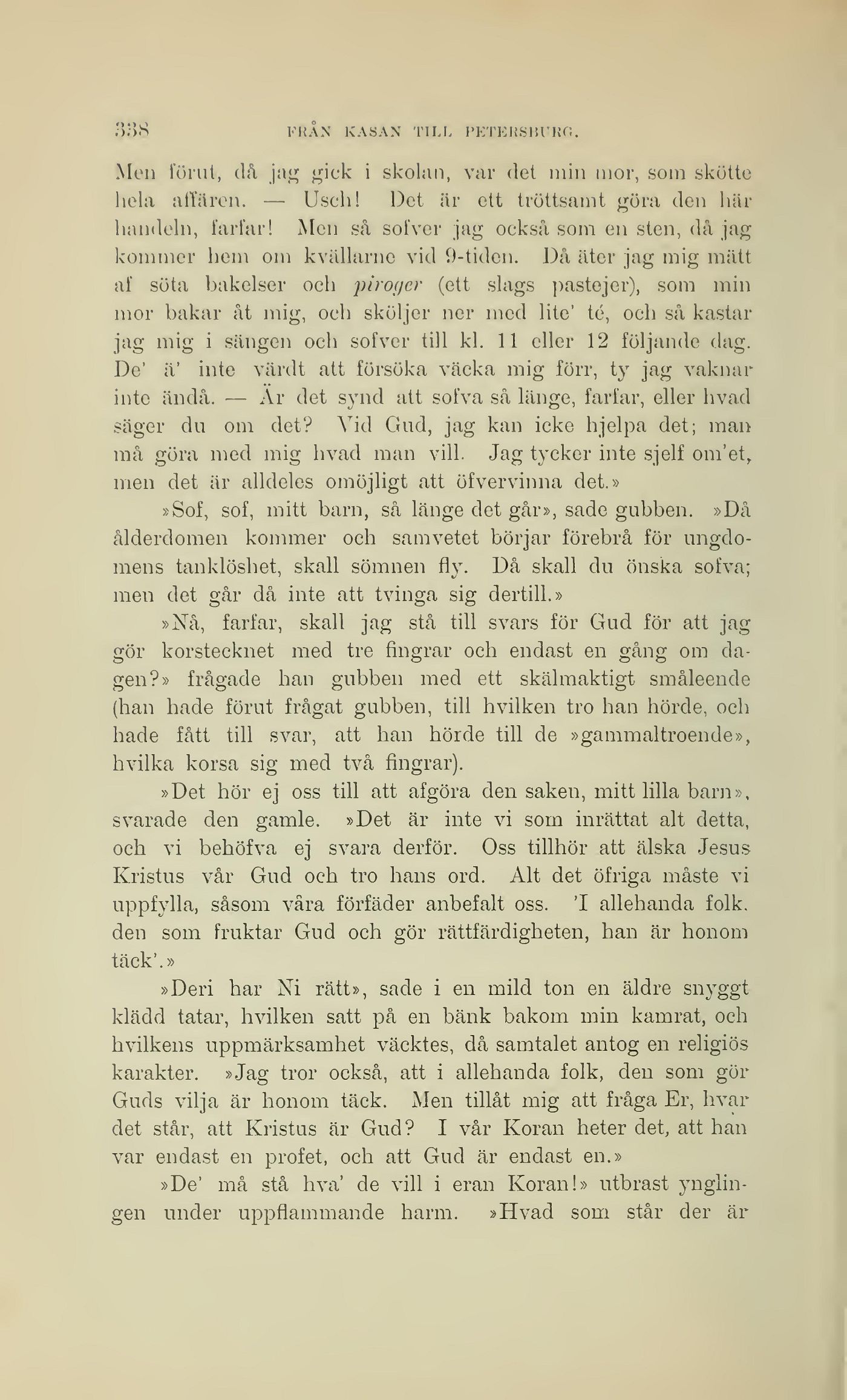 (han hade förut frågat gubben, till hvilken tro han hörde, och