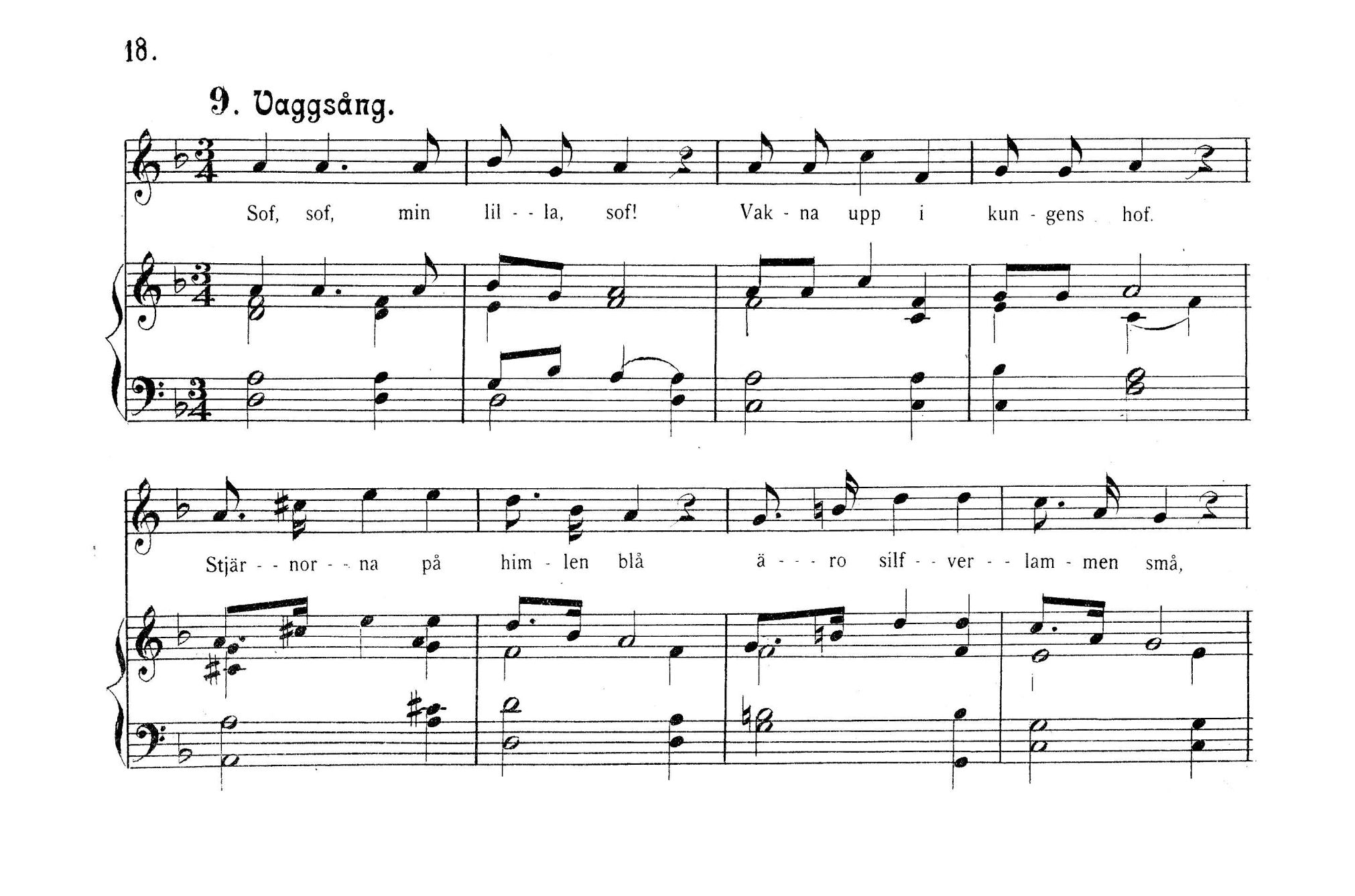Sof, sof, min lil - - la, sof! Vak - na upp i kun - gens hof.