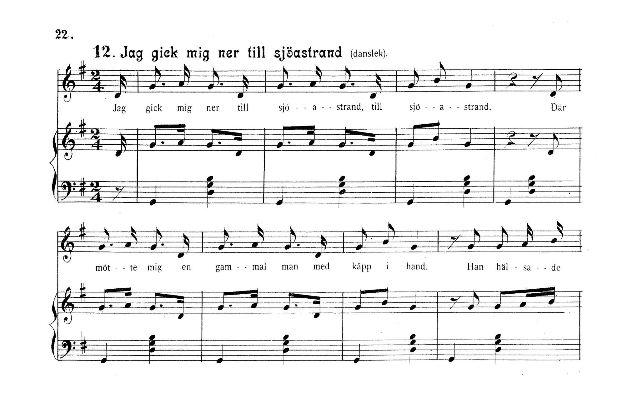 Jag gick mig ner till sjö - - a - - strand, till sjö - a - - strand. Där