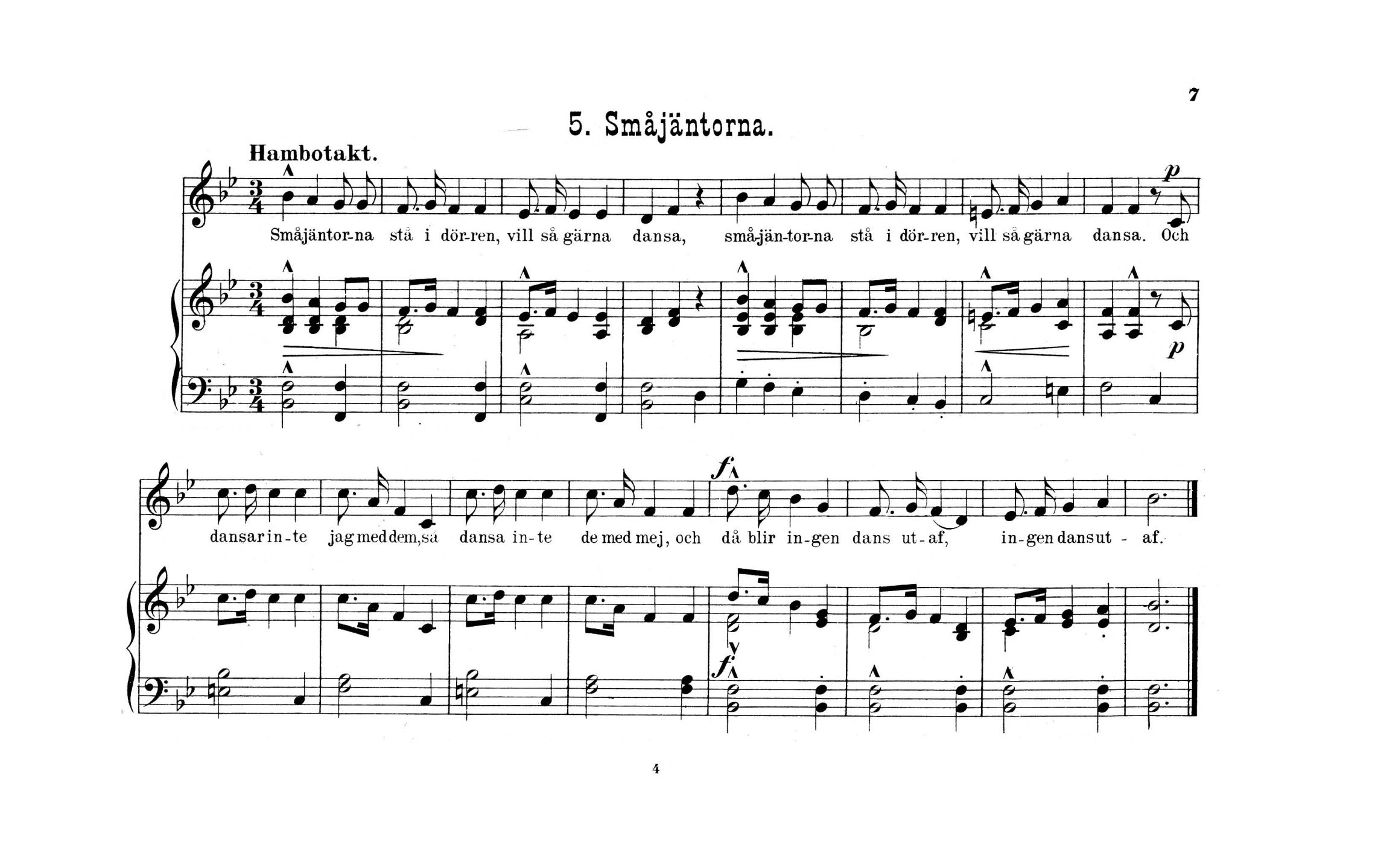 Småjäntor-na stà i dör-ren, vill så gärna dansa, små-jän-tor-na stå i dor-ren, vill sågarna dansa. Och