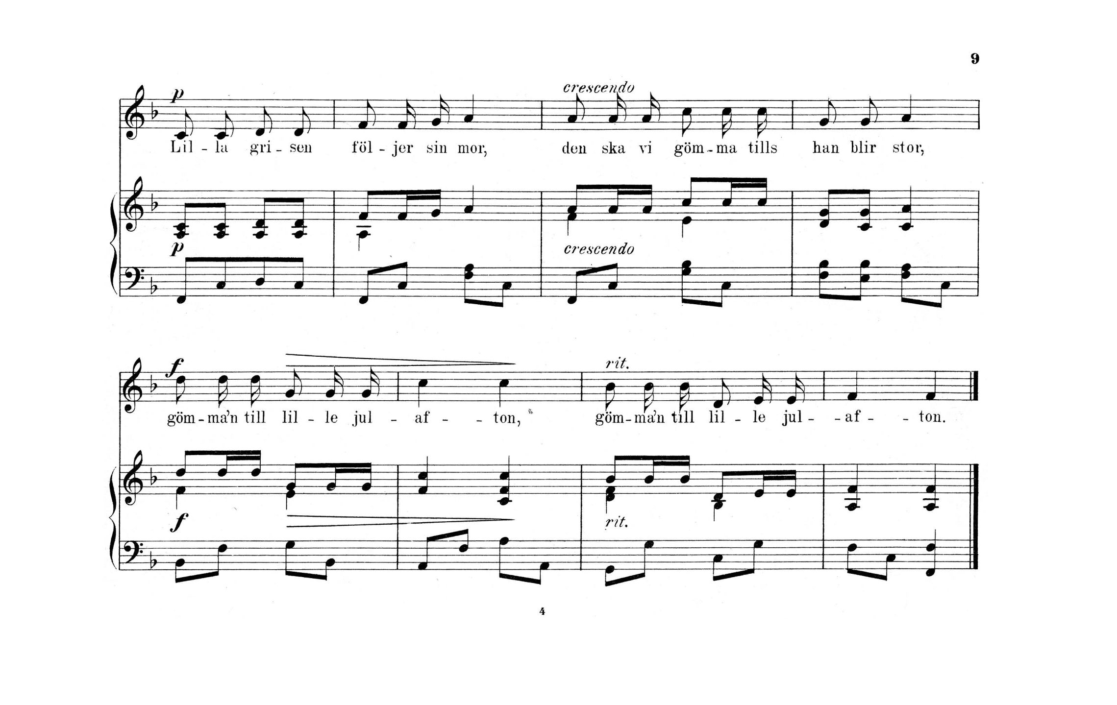 Lil - hi gri - sen föl - jör sin mor, dou ska vi göm-ma tills han blir stor,