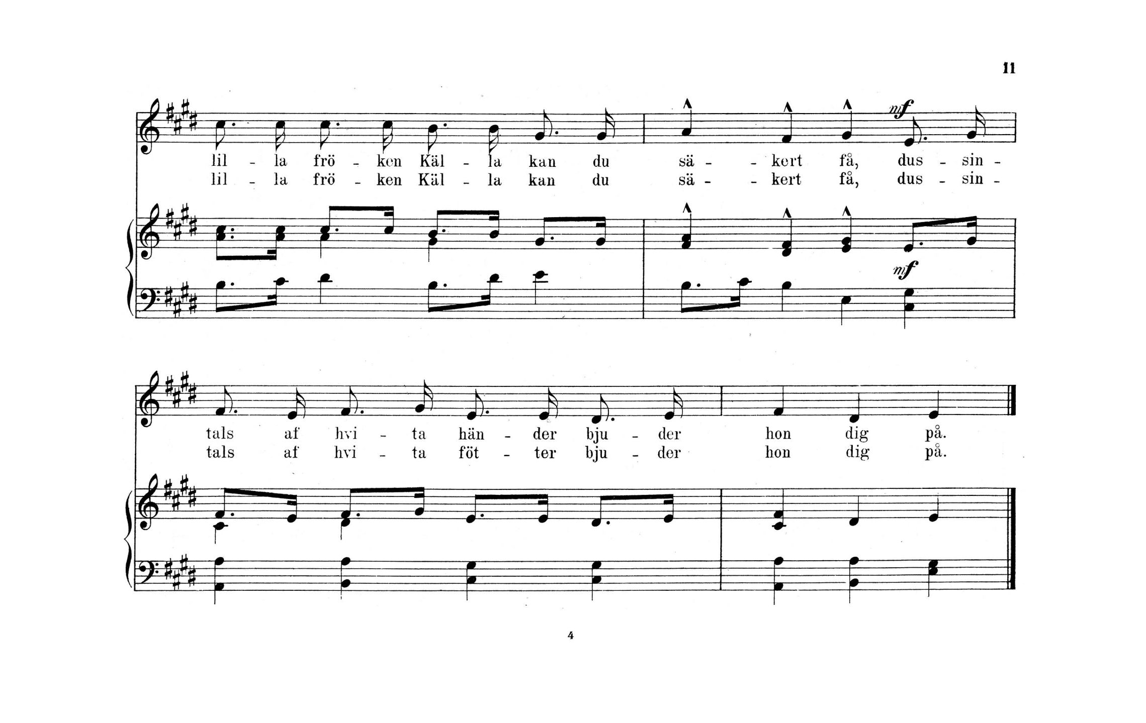 lil - la frö - ken Käl - la kan du sä - kert få, dus - sin -
