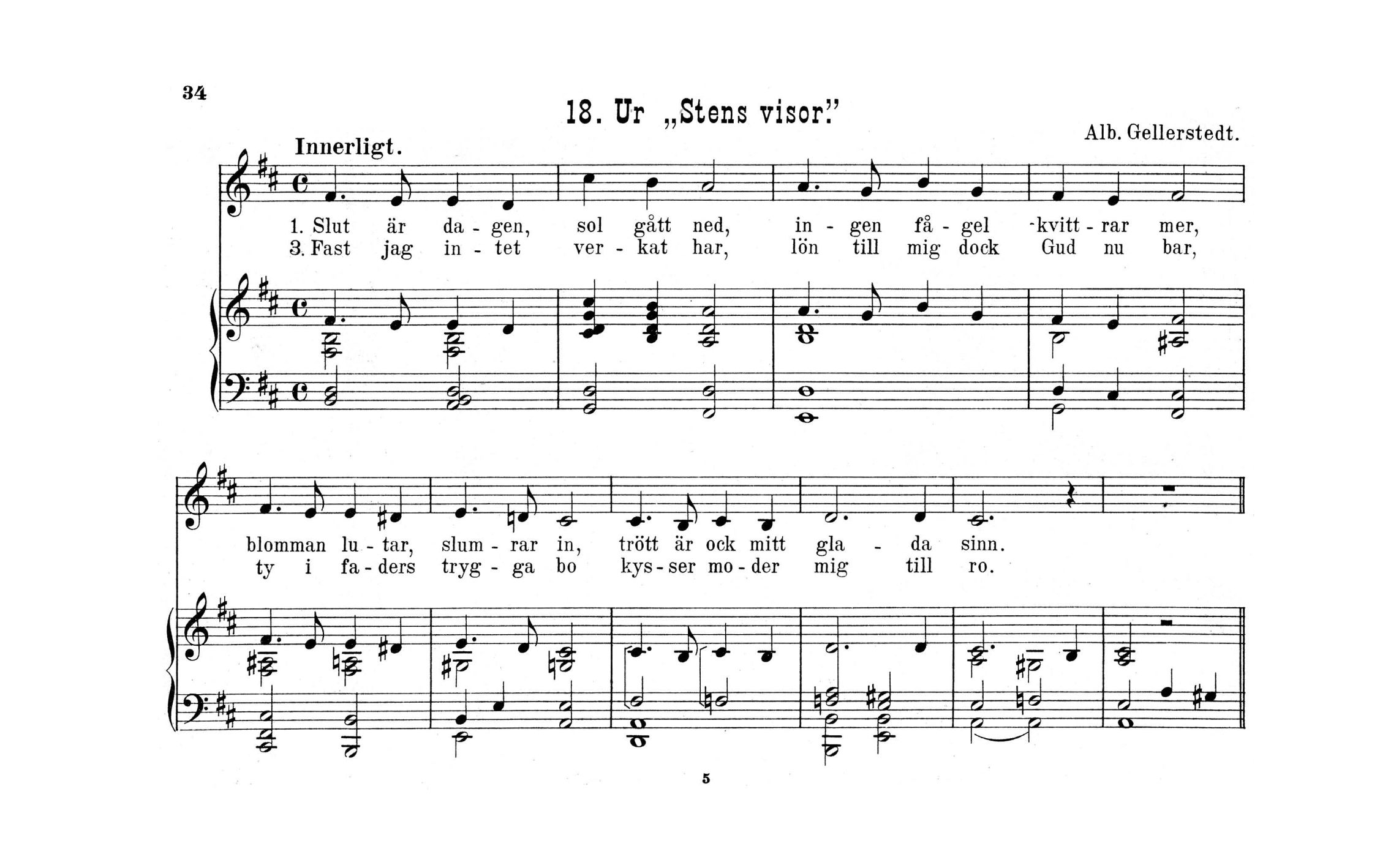 blomman lu - tar, slum - rar in, trött är ock mitt gla - da sinn.