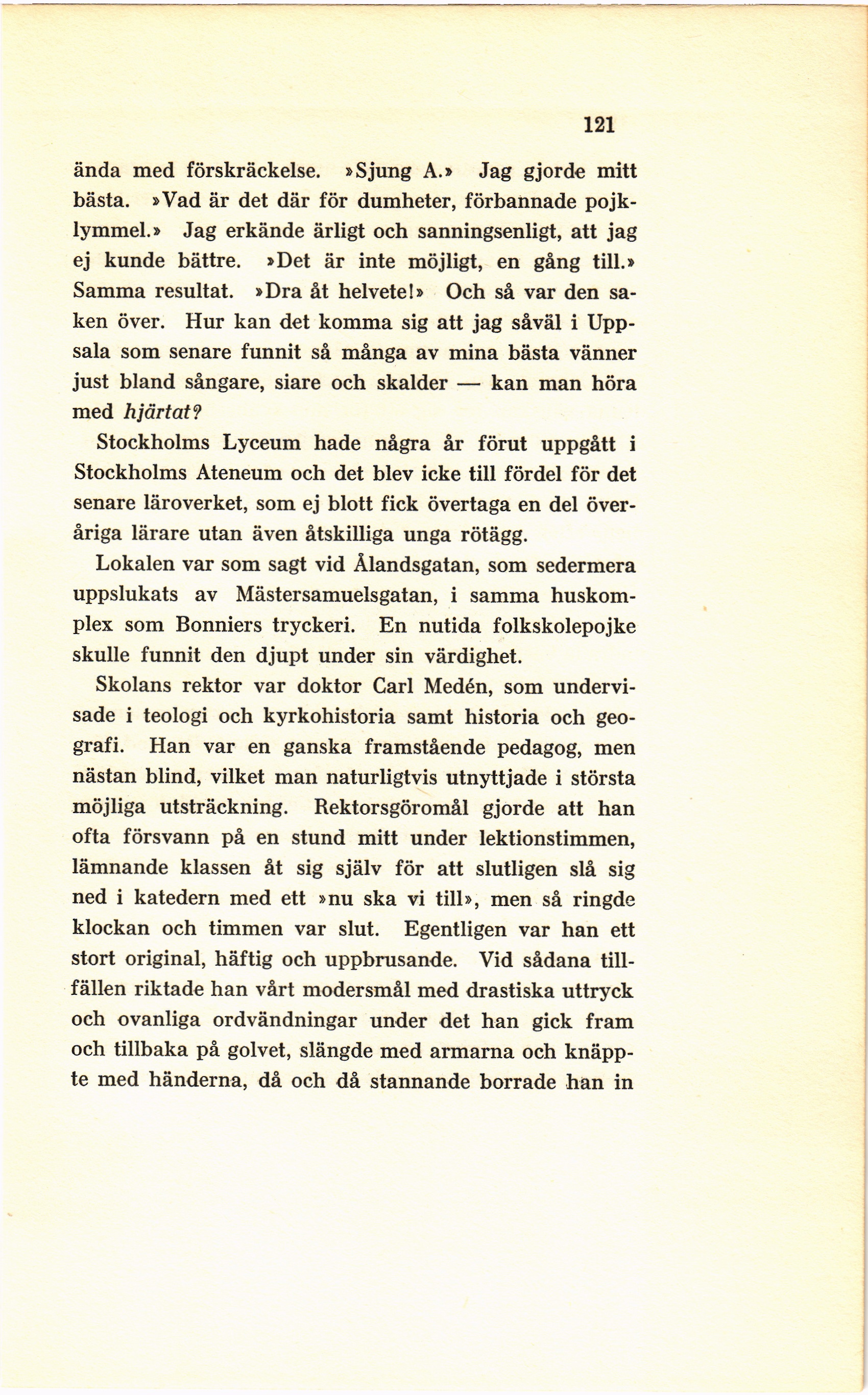 ända med förskräckelse. »Sjung A.» Jag gjorde mitt