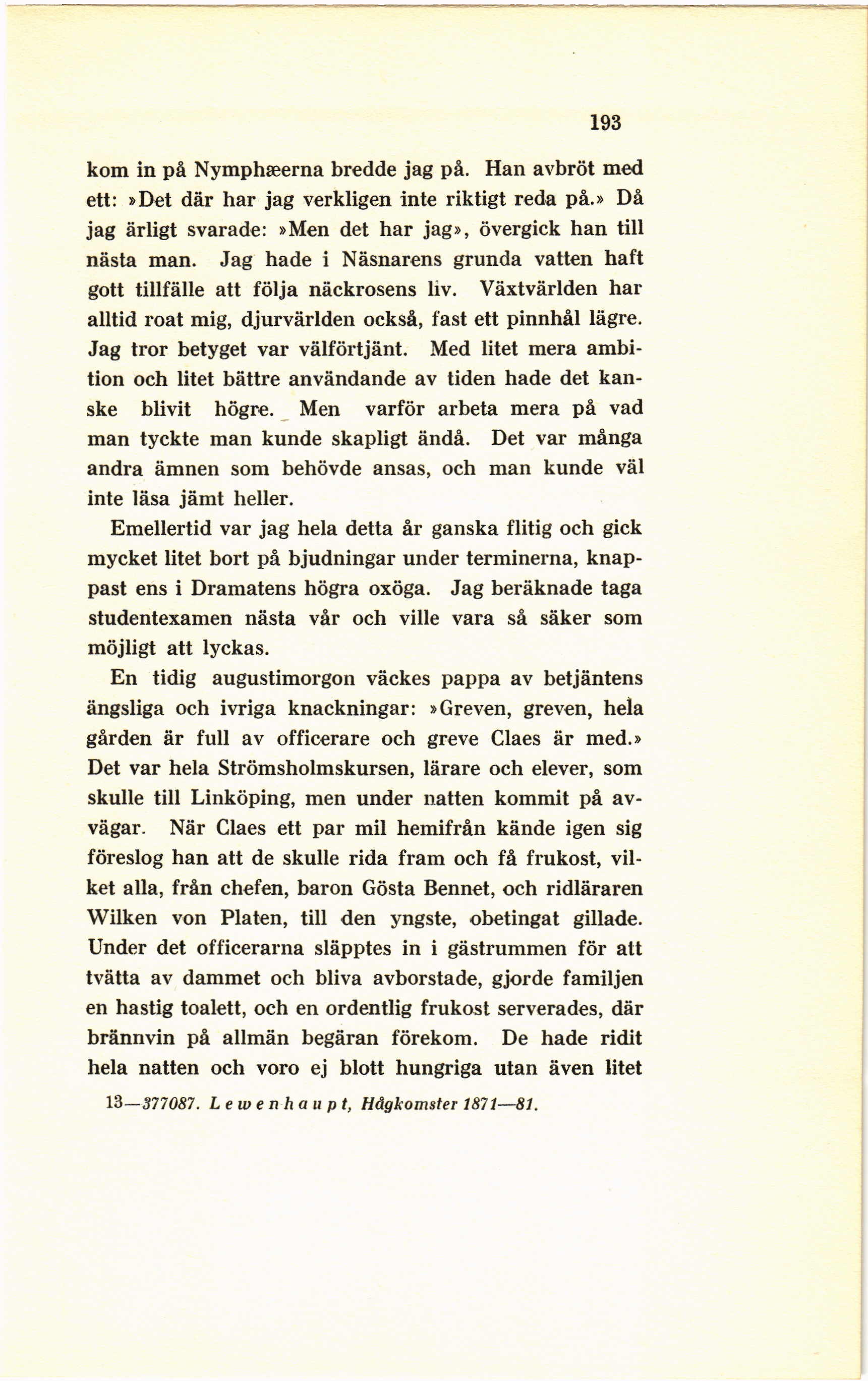 13—377087. Lewenhaupt, Hågkomster 1871—81.