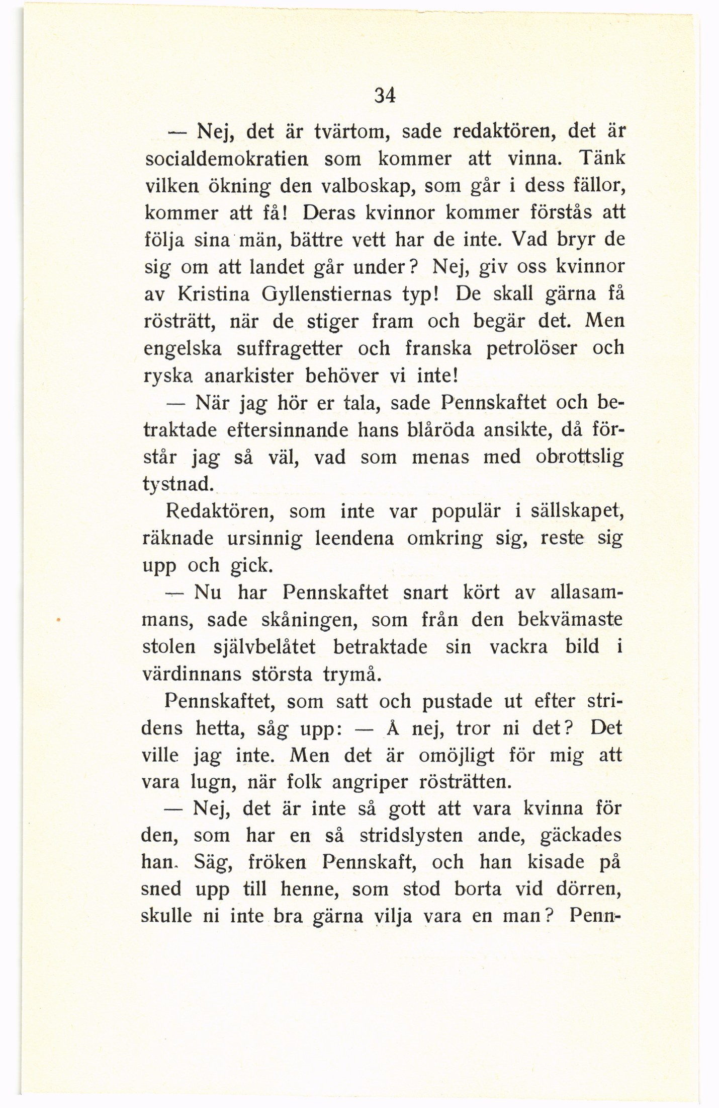 stridens hetta, såg upp: — Å nej, tror ni det? Det