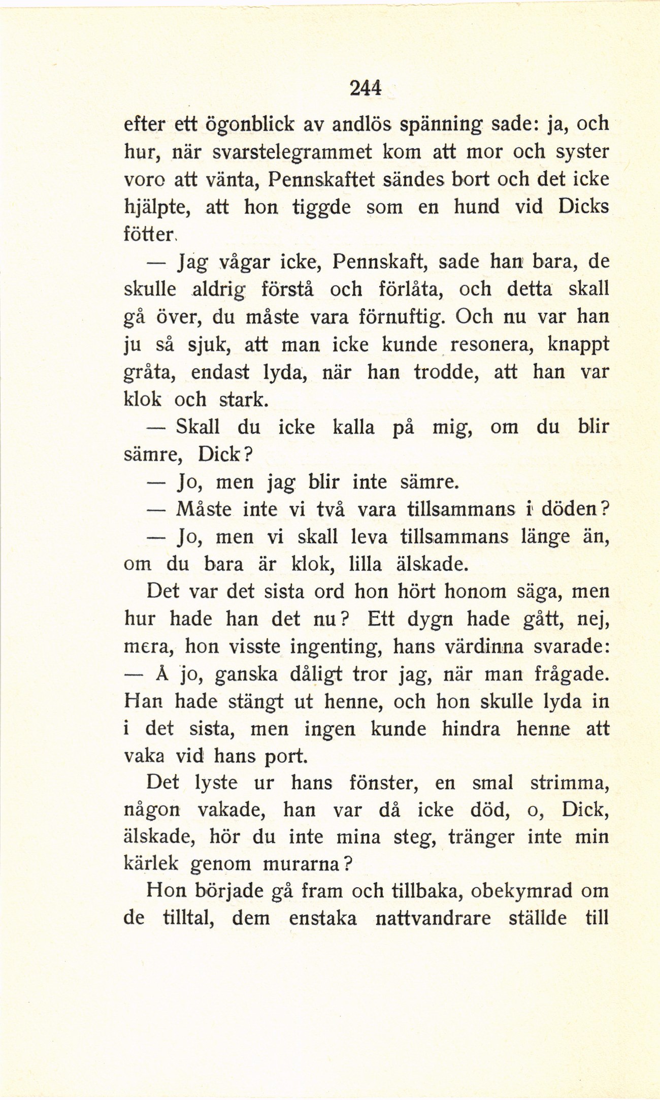 — Jag vågar icke, Pennskaft, sade han bara, de