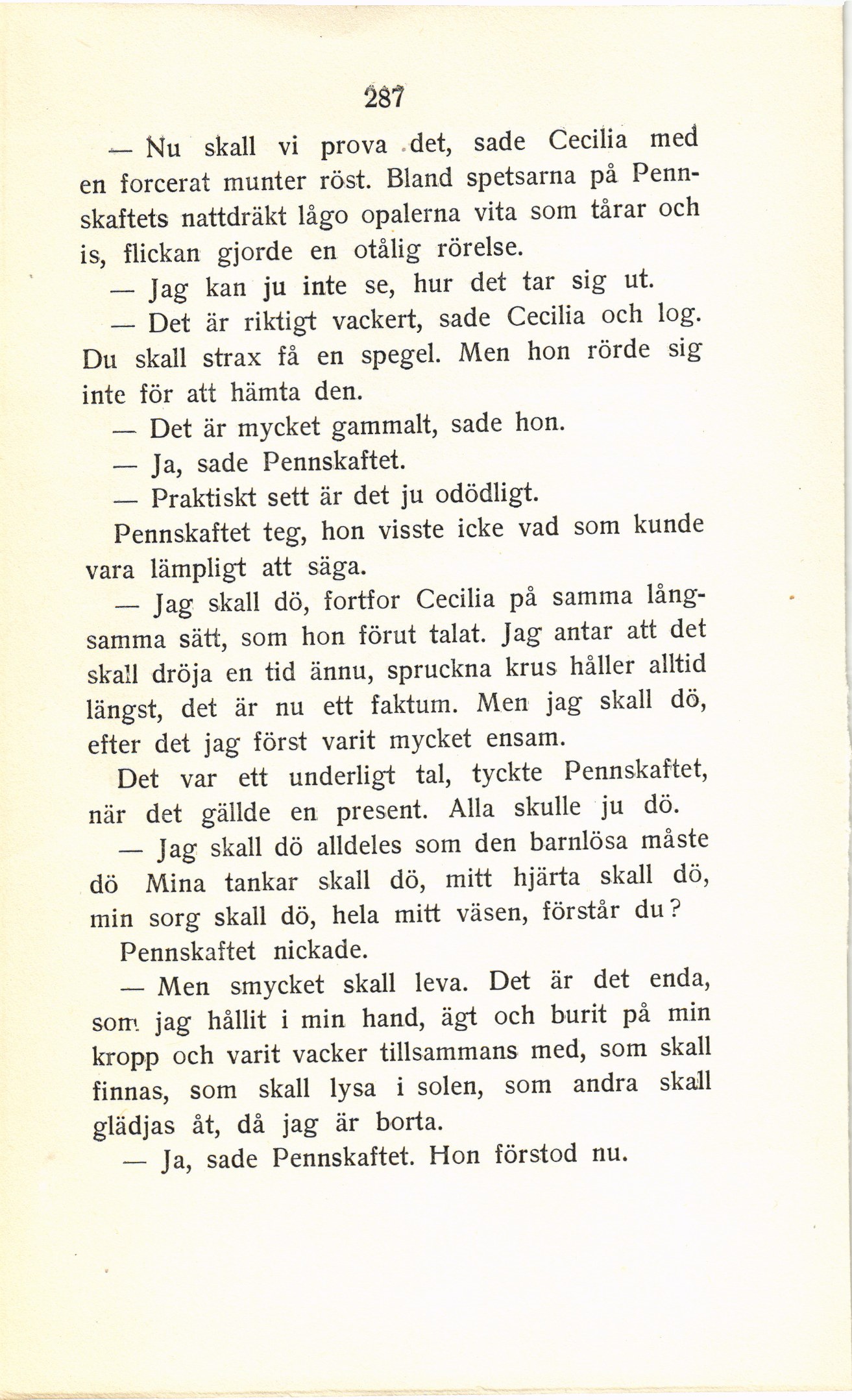 — Ja, sade Pennskaftet. Hon förstod nu.