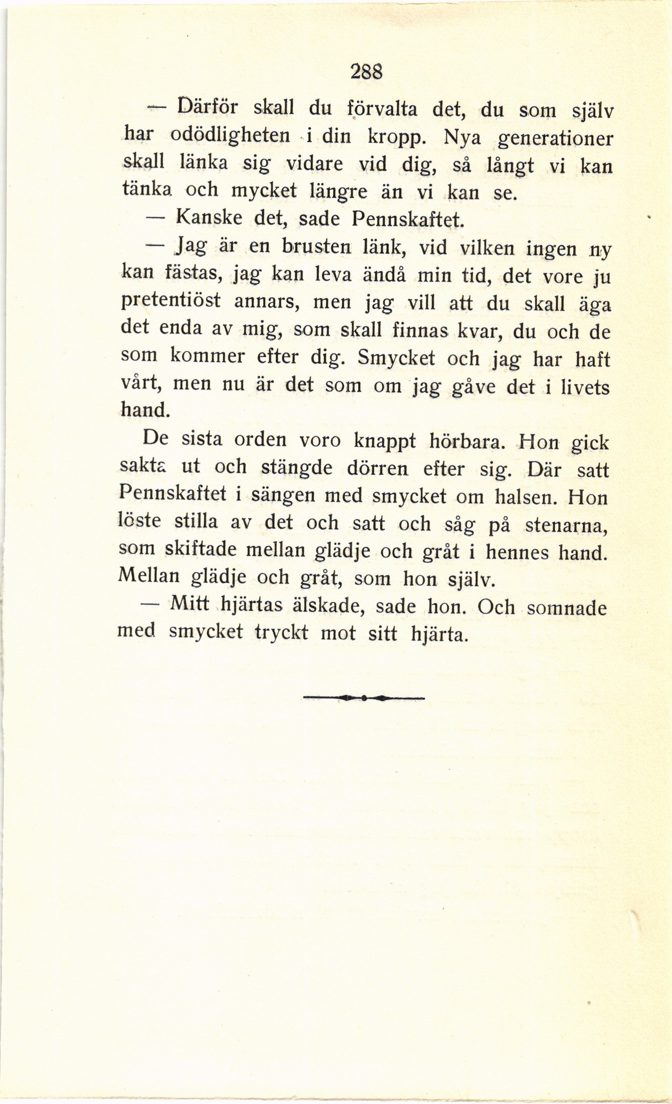 — Mitt hjärtas älskade, sade hon. Och somnade