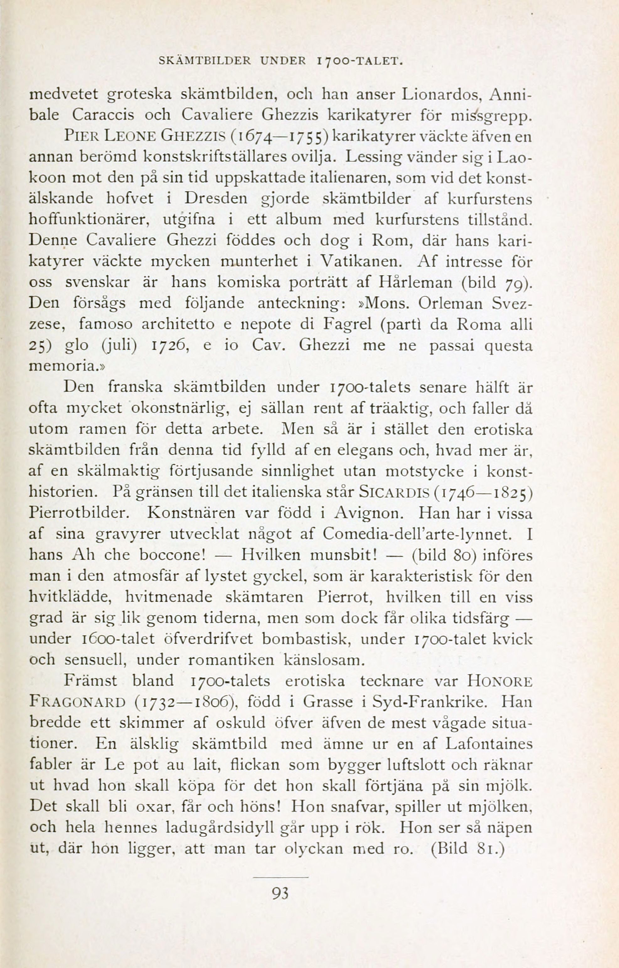 Pier Leone Ghezzis (1674—1755) karikatyrer väckte äfven en